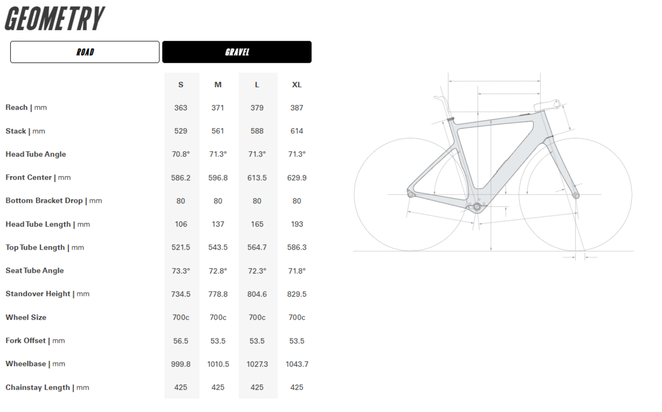 Gravel-Optimized Geometry: Carbon frame with geometry tailored for stability and comfort over gravel and rough roads, without compromising speed.