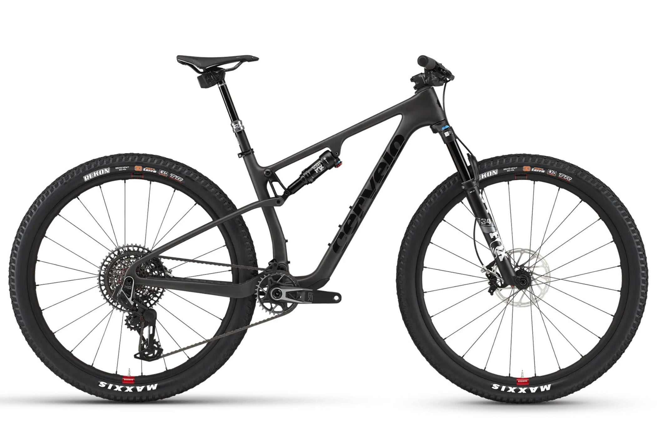 A high-performance full-suspension mountain bike designed for aggressive trail riding and cross-country performance, featuring a lightweight carbon frame and the sleek Five Black colorway.