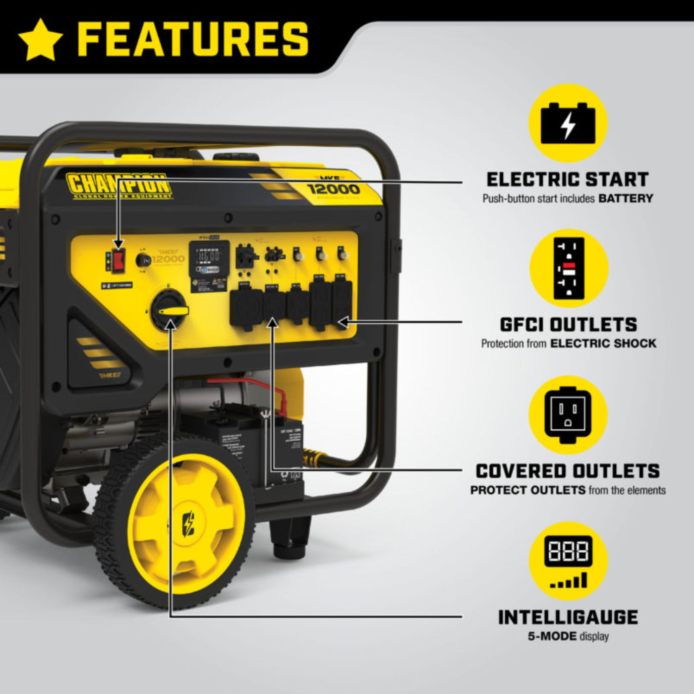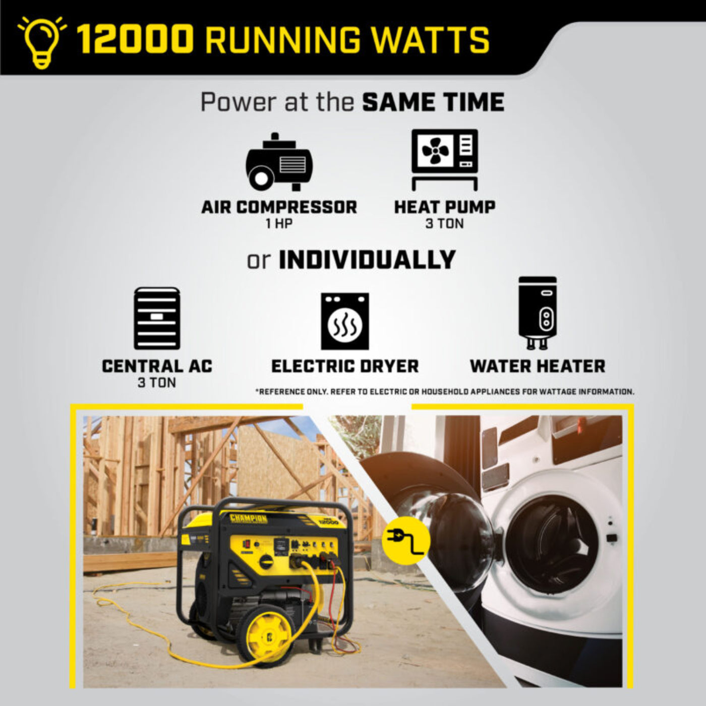 Champion 201160 12000W/15000W Generator Gas 50A Electric Start with CO Shield New