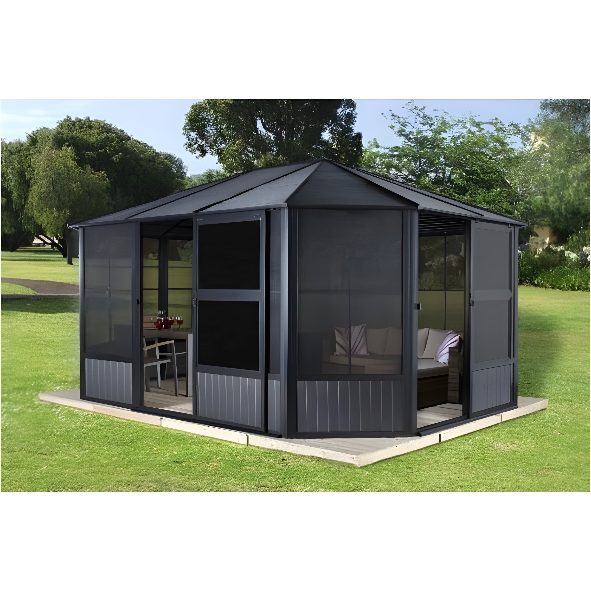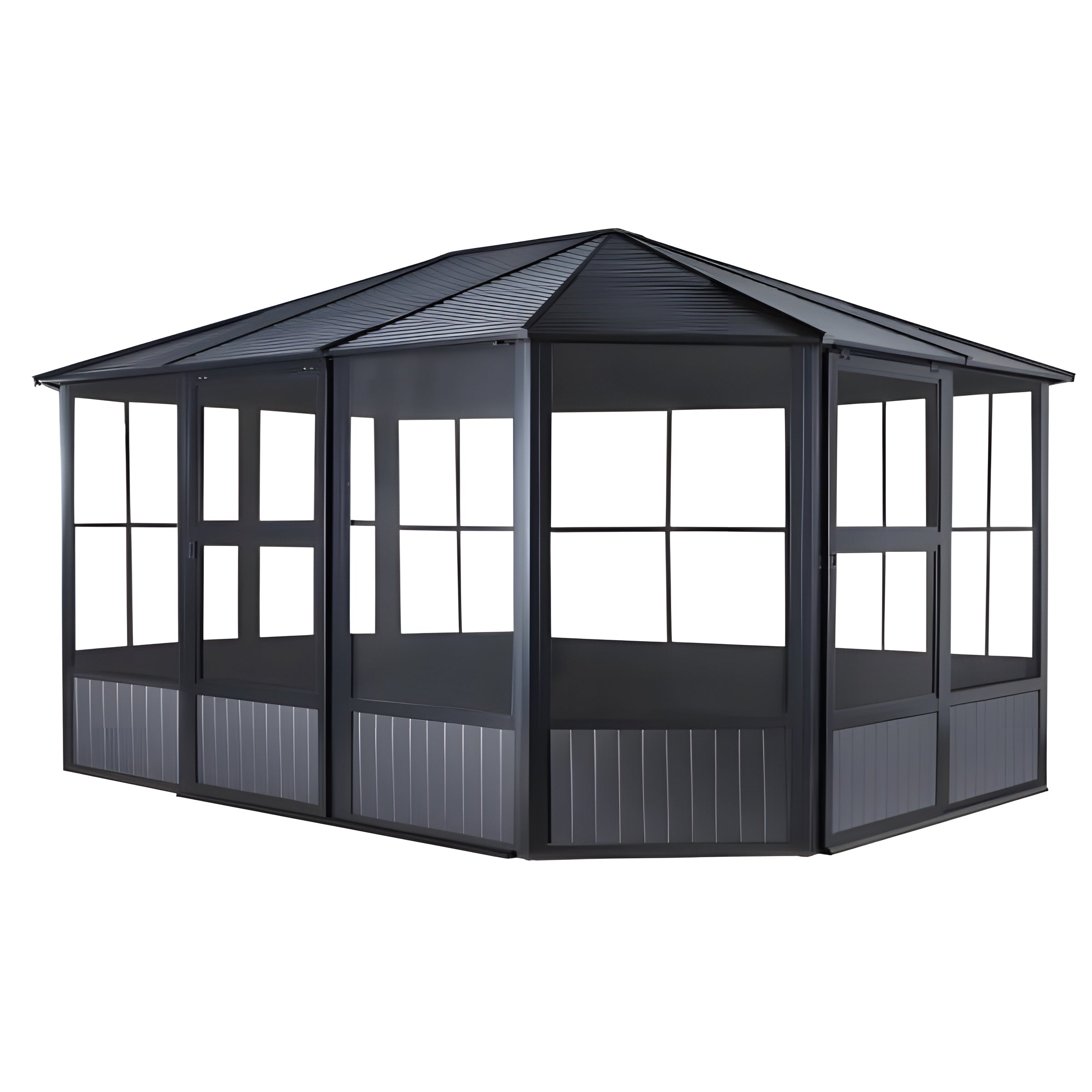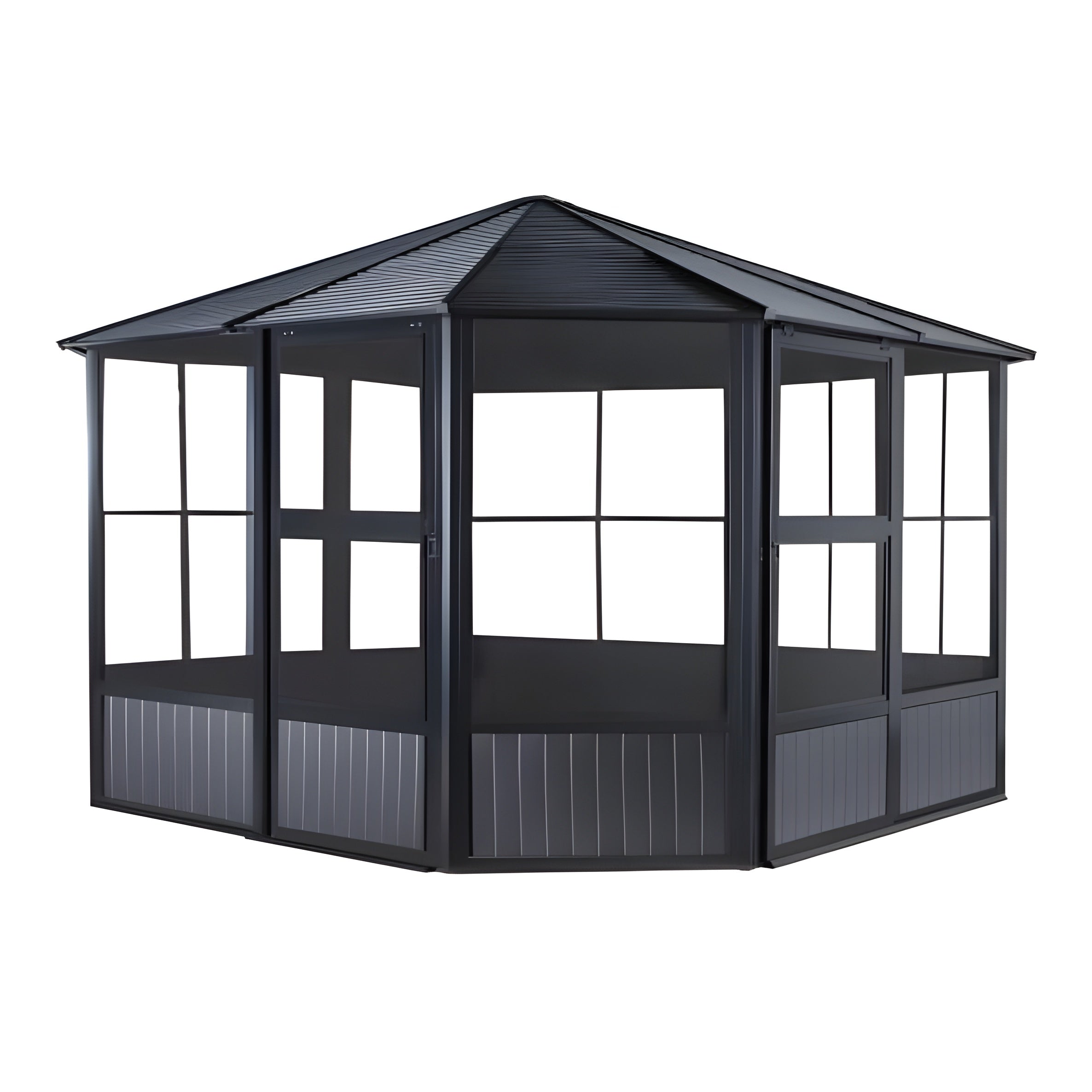 Sojag™ Charleston Solarium 4-Season Sunroom Kit / Patio Gazebo - Dark Gray with Steel Roof