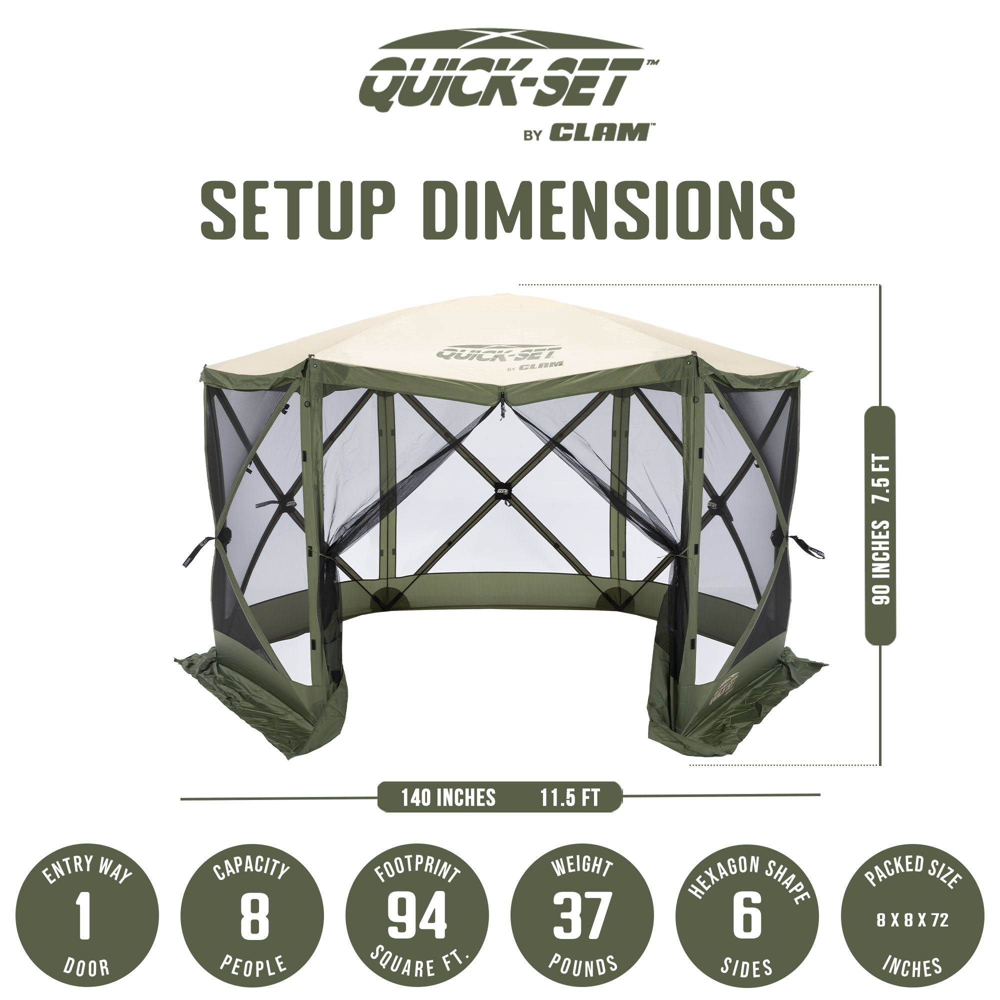 A: When set up, the CLAM Quick Set Escape provides an 11.5 x 11.5-foot area, offering ample space for several people to gather comfortably.