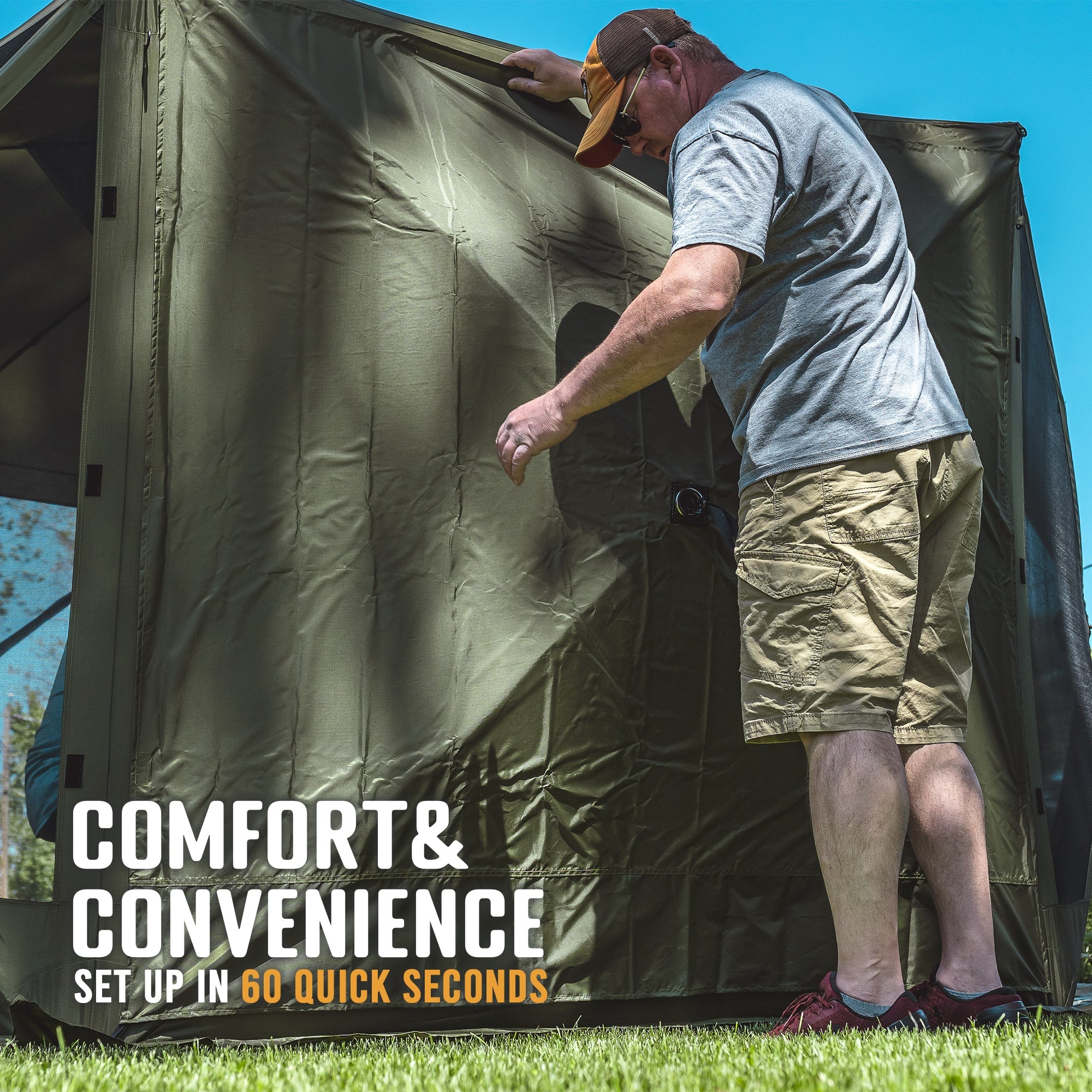 Measuring 11.5 x 11.5 x 7.5 feet, this pop-up canopy offers ample space for up to 8 people or a standard-size picnic table. With no assembly required, it sets up in a mere 45 seconds, allowing you to quickly create your outdoor retreat. When your adventure concludes, the shelter easily packs away into its oversized carry bag for effortless storage and transport.