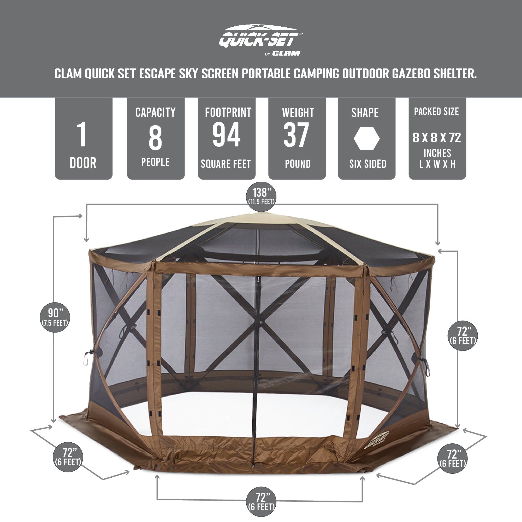 Q: What size is the Clam Quick Set Escape Sky Screen Shelter?