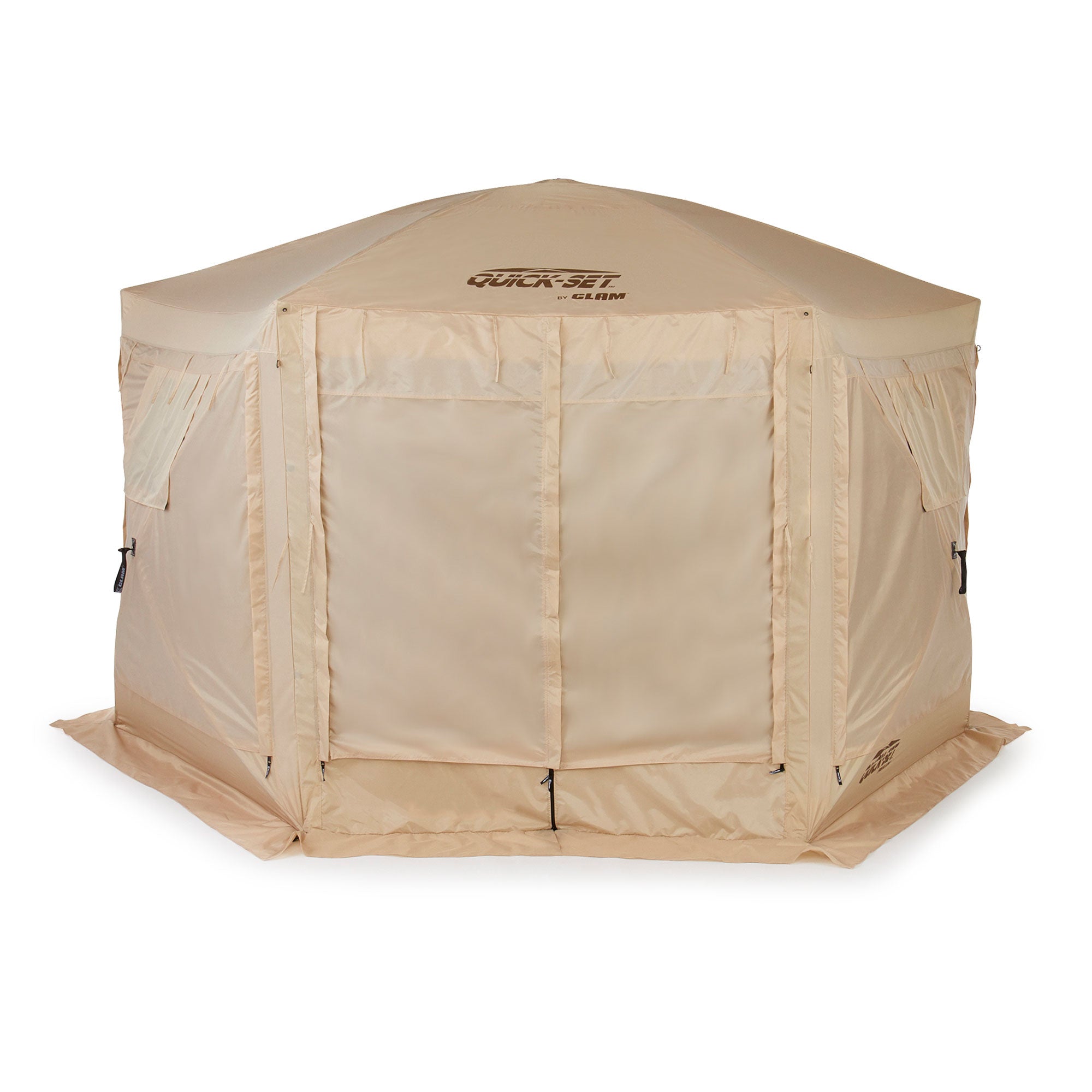 CLAM Quick-Set Pavilion 12.5 x 12.5 Foot Portable Outdoor Canopy Shelter, Tan - 136085