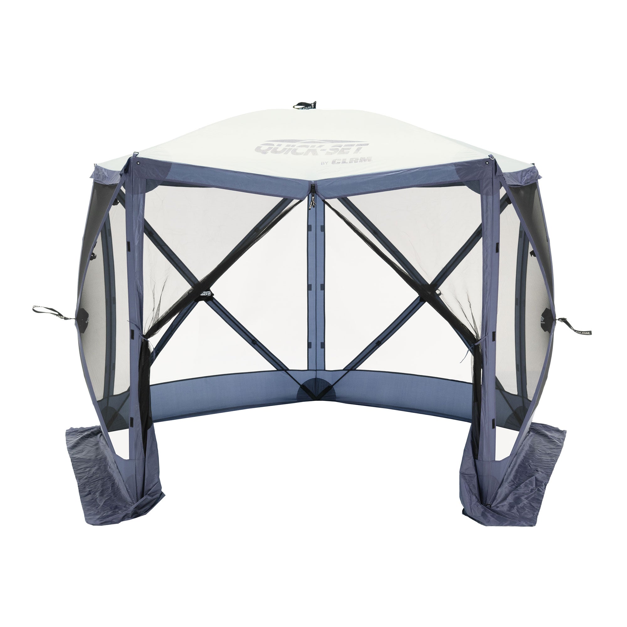 Experience ultimate outdoor comfort and protection with the CLAM Quick Set Venture Portable Outdoor Gazebo Canopy Shelter. Rain or shine, this pop-up canopy ensures you enjoy every moment outdoors without worrying about the weather. Accommodating up to 6 people, it's perfect for camping, picnics, tailgating, or any outdoor activity. Its 5-sided design and taped roof panel resist water, while the no-see-um mesh screen and extra-wide skirt keep bugs out, allowing you to relax in peace.