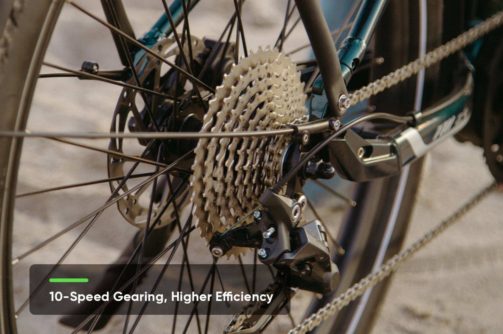 To enhance versatility, the CMB Pro features a Shimano 10-speed drivetrain, giving riders smooth and precise gear shifting to adapt to various terrains and riding conditions. Whether you’re navigating hilly streets or cruising on flat roads, this setup ensures an efficient and enjoyable ride.