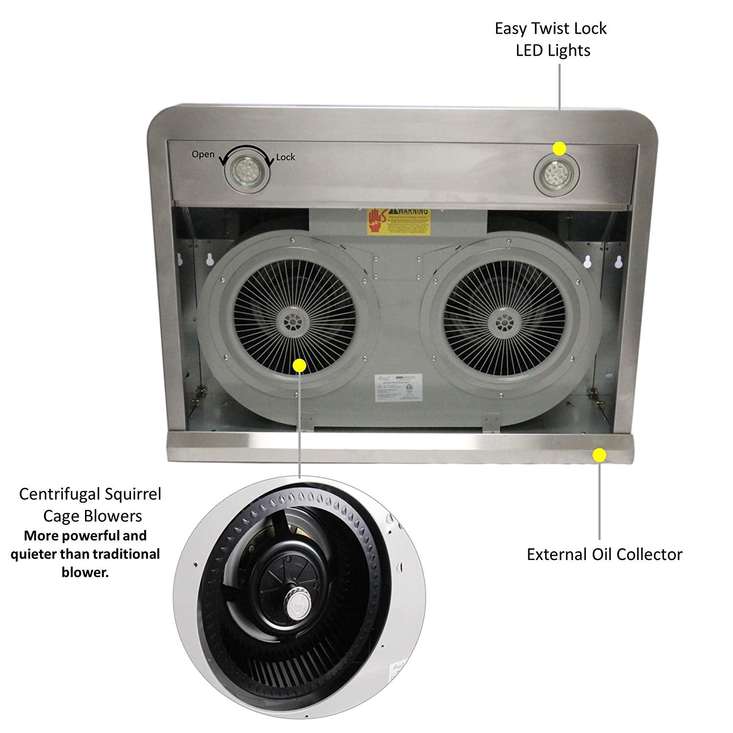 A: It features a high-performance motor with multiple speed settings for effective smoke and odor removal.