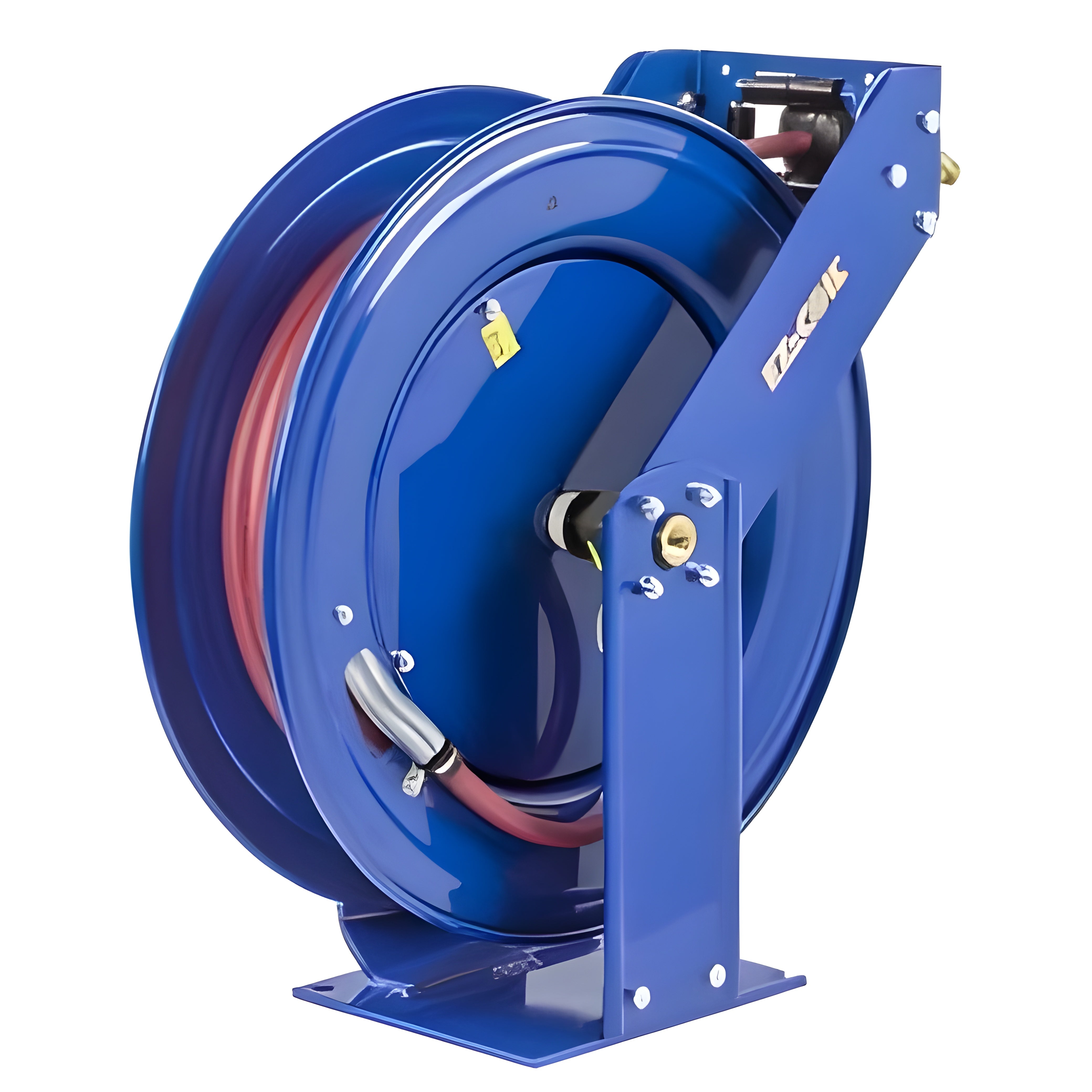 A: The reel uses a spring-driven rewind system, ensuring smooth and efficient hose retraction, which minimizes downtime and saves space.