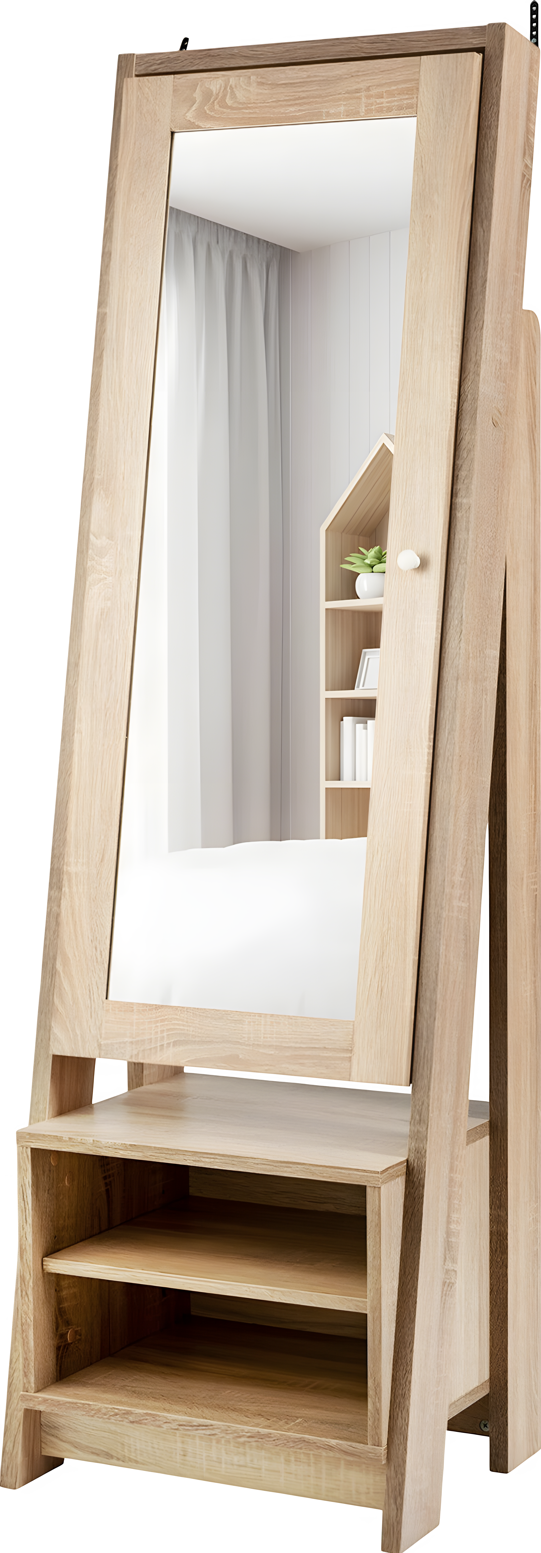 This freestanding mirror with jewelry cabinet is a perfect addition to your bedroom or bathroom. Made of high-quality MDF and engineered wood, this jewelry storage cabinet is durable and sturdy enough to serve you a long time. With the help of ample storage space, you can store all your cosmetics and jewelry in the cabinet. Combining an elegant appearance with excellent practicality, this mirror cabinet can perfectly blend in with various decor styles and meet your storage needs.