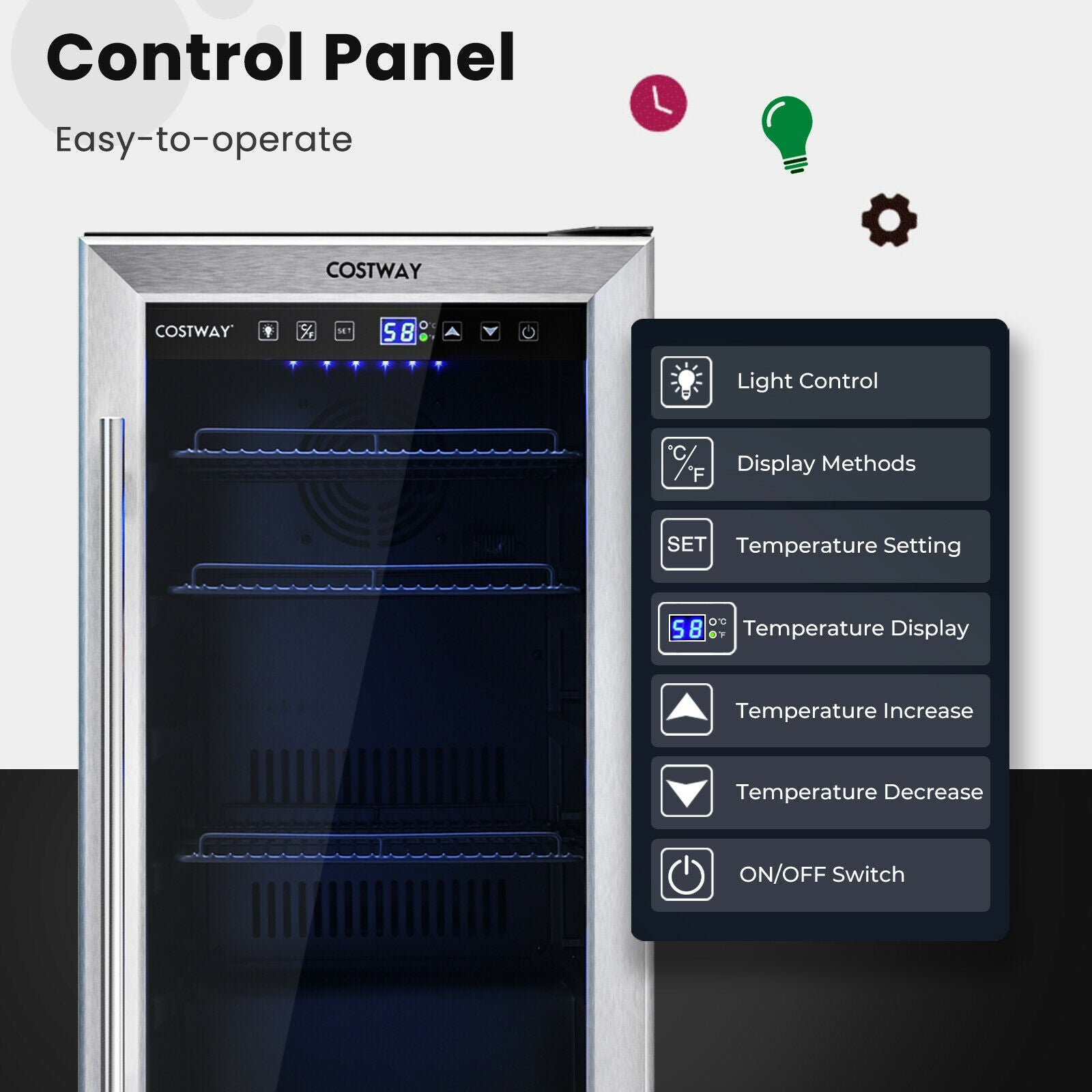 Costway Beverage Refrigerator 15" 100 Can Built-in/Freestanding with Adjustable Temp and Shelf New - FP10126US-SL