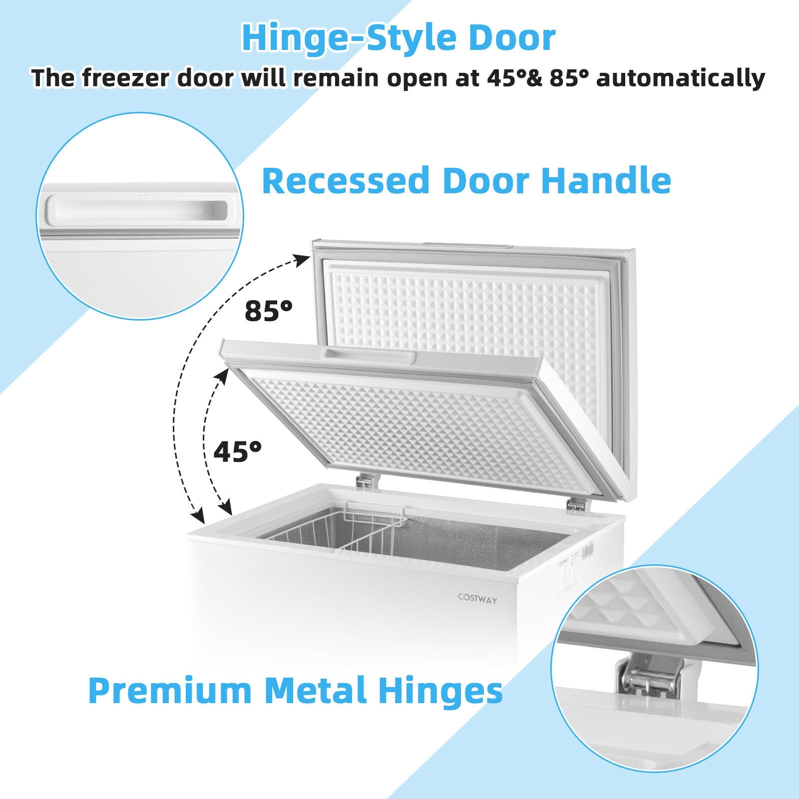 Low Noise Level & Energy Consumption: With a low energy consumption of 0.02kWh, this chest freezer is more power-saving and eco-friendly than ordinary chest freezers, reducing your electricity bills. Besides, the maximum working noise of this unit is 43dB, which won't disturb you whether you are sleeping or working.