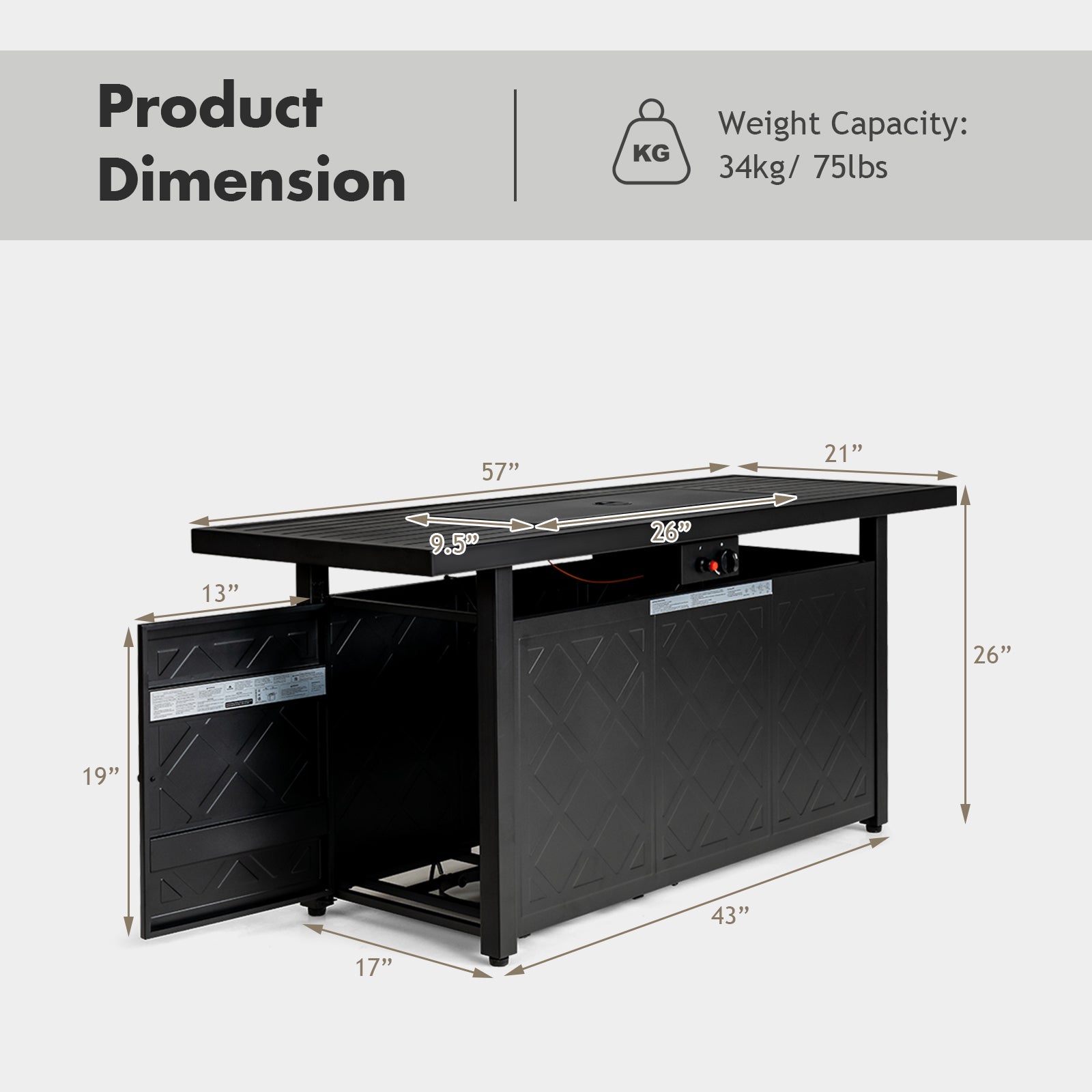 Large 57" Size: Ideal for larger gatherings, the spacious tabletop offers plenty of room for drinks, snacks, and decor, while the fire provides a cozy ambiance.