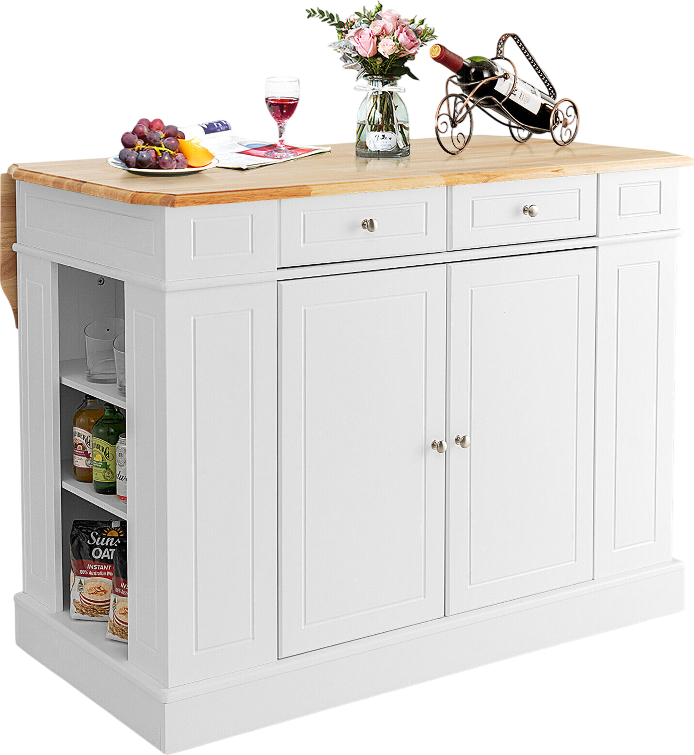Costway Kitchen Island with Drop Leaf Countertop and 3-Level Adjustable Shelves New - JV10444WH+