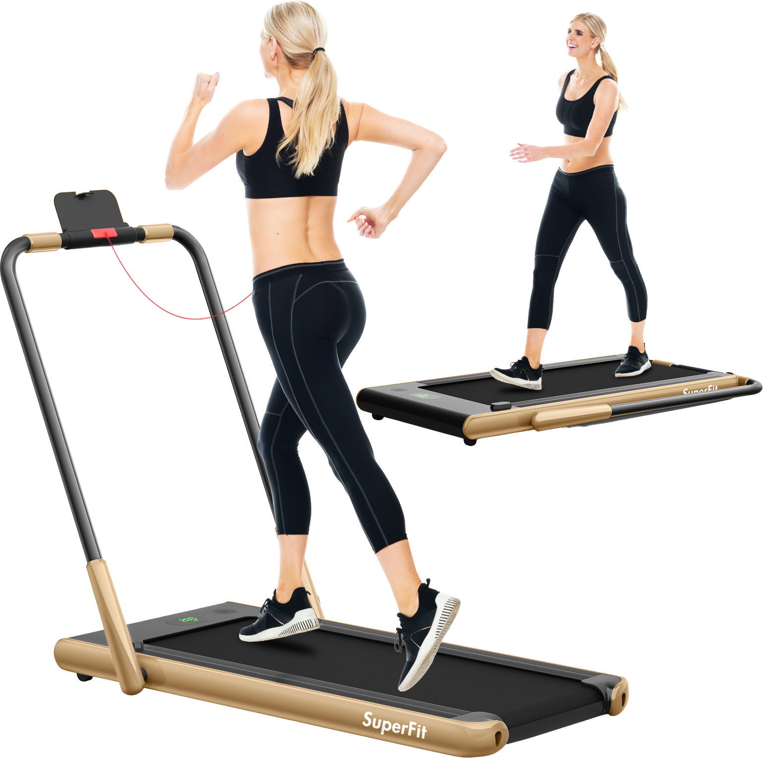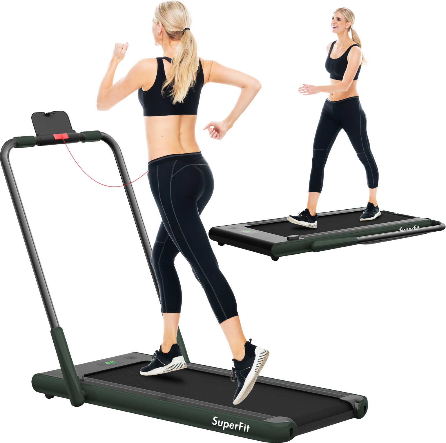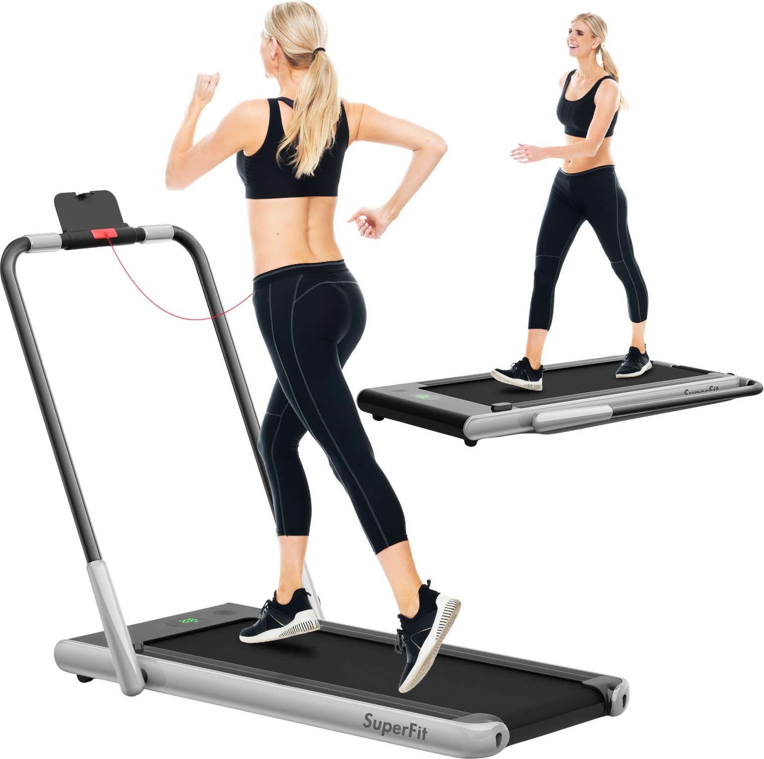 Q: What is the Costway SuperFit Treadmill Folding 2-in-1 No Armrests?