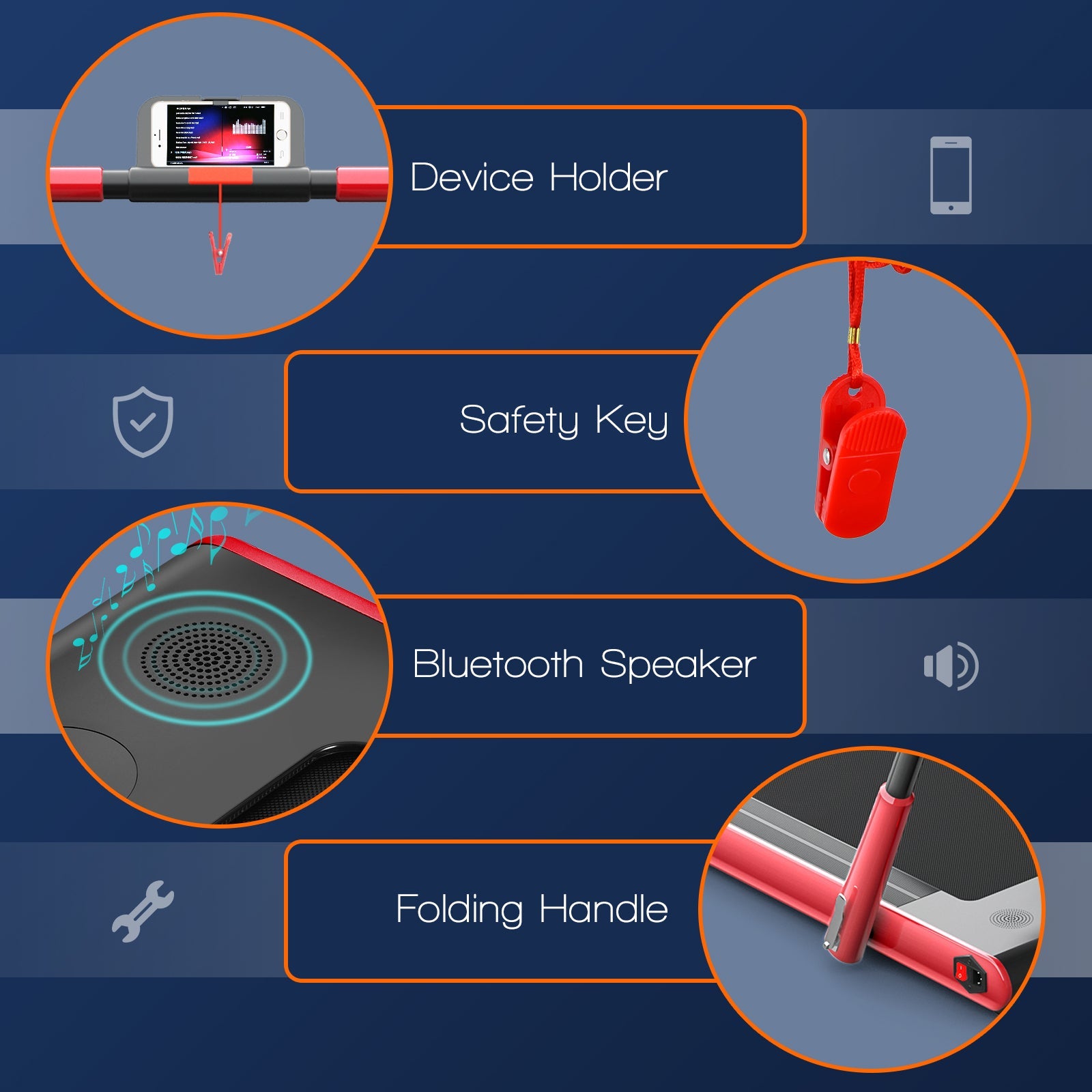 A: Yes, the SuperFit Treadmill features built-in speakers, allowing you to connect your device and enjoy your favorite music or podcasts during your workout.