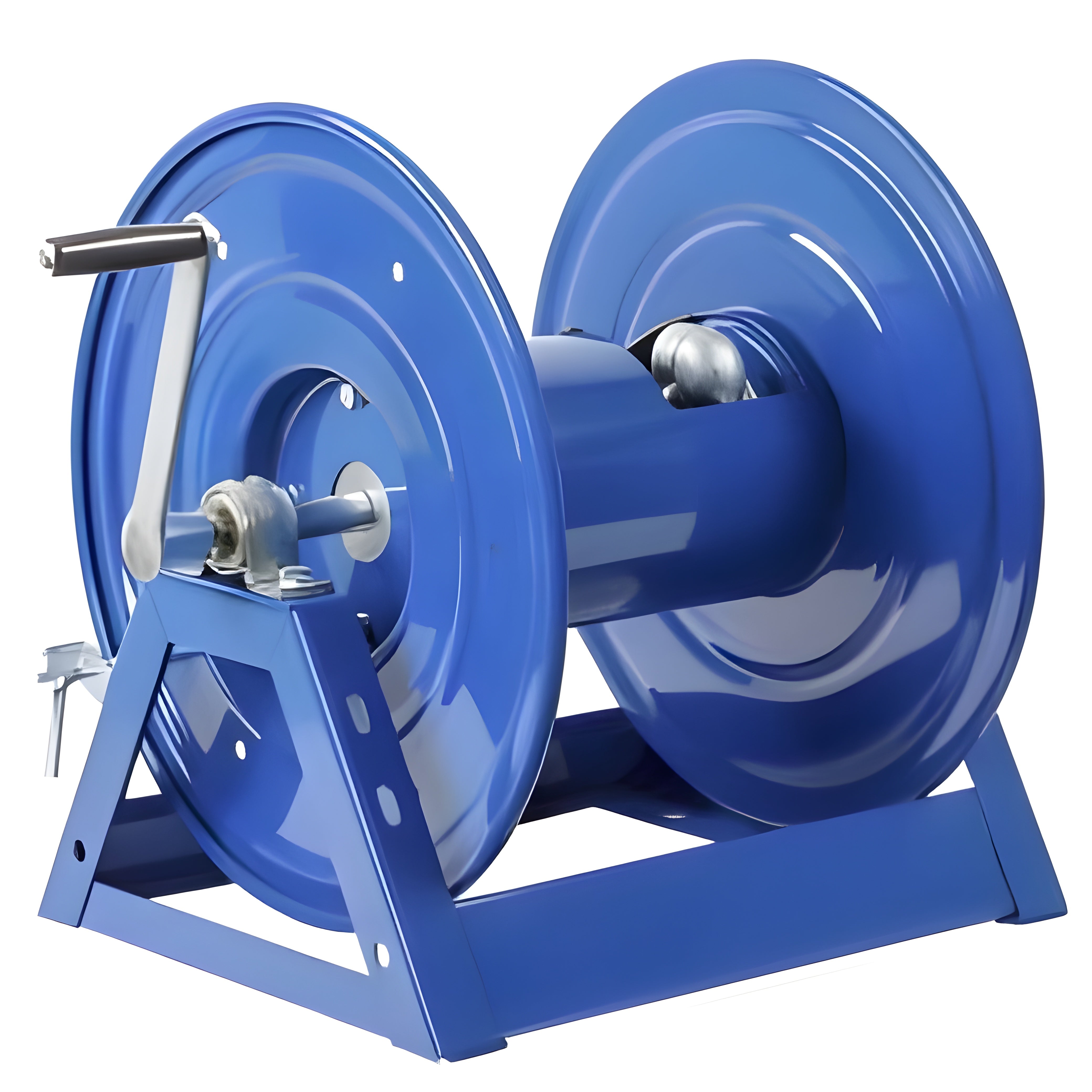 COXREELS 1125 Series hand crank hose reels have the features demanded by industry professionals. The industry preferred design features a sturdy one piece all welded "A" frame base, low profile outlet riser and open drum slot design provides a non-crimping, flat smooth hose wrap.