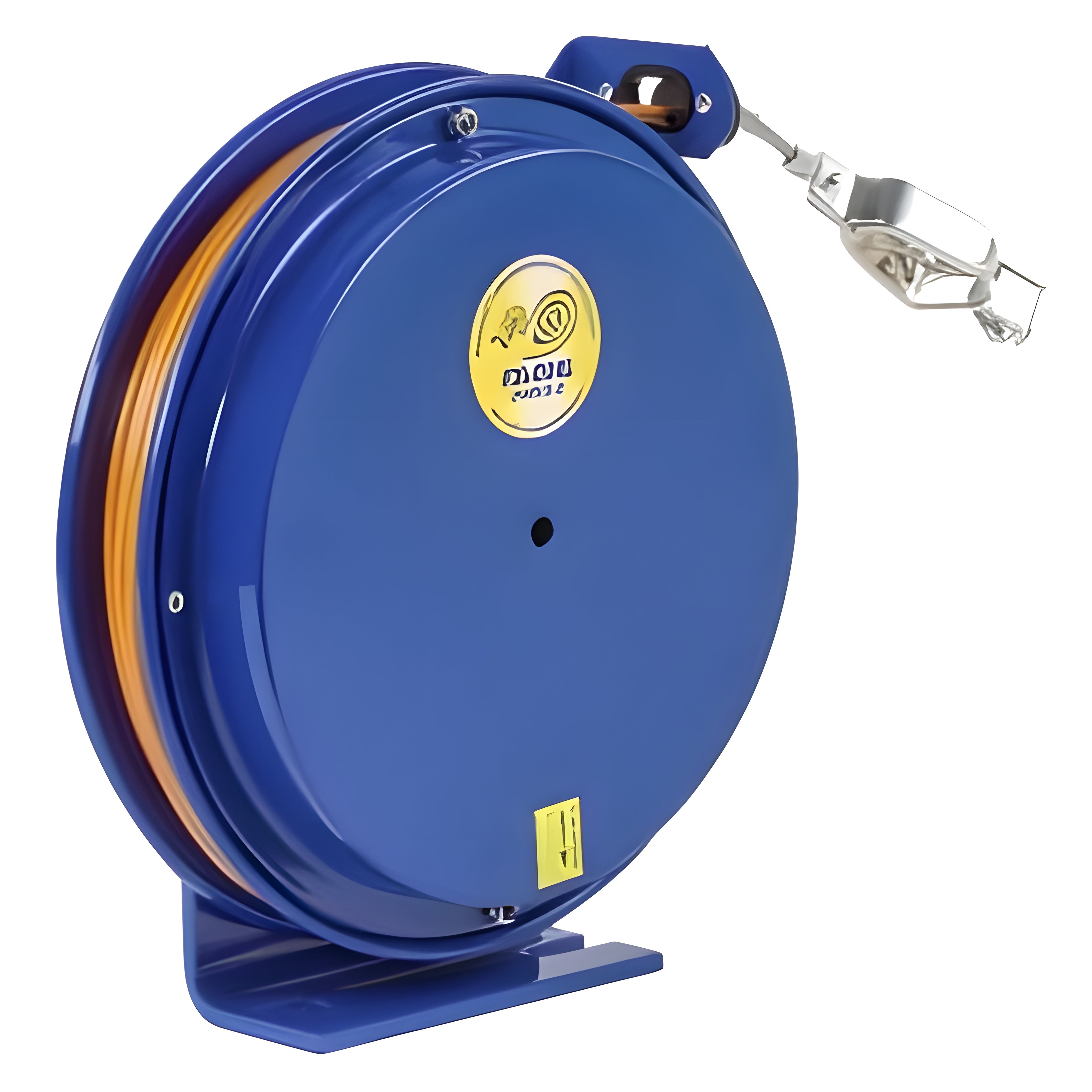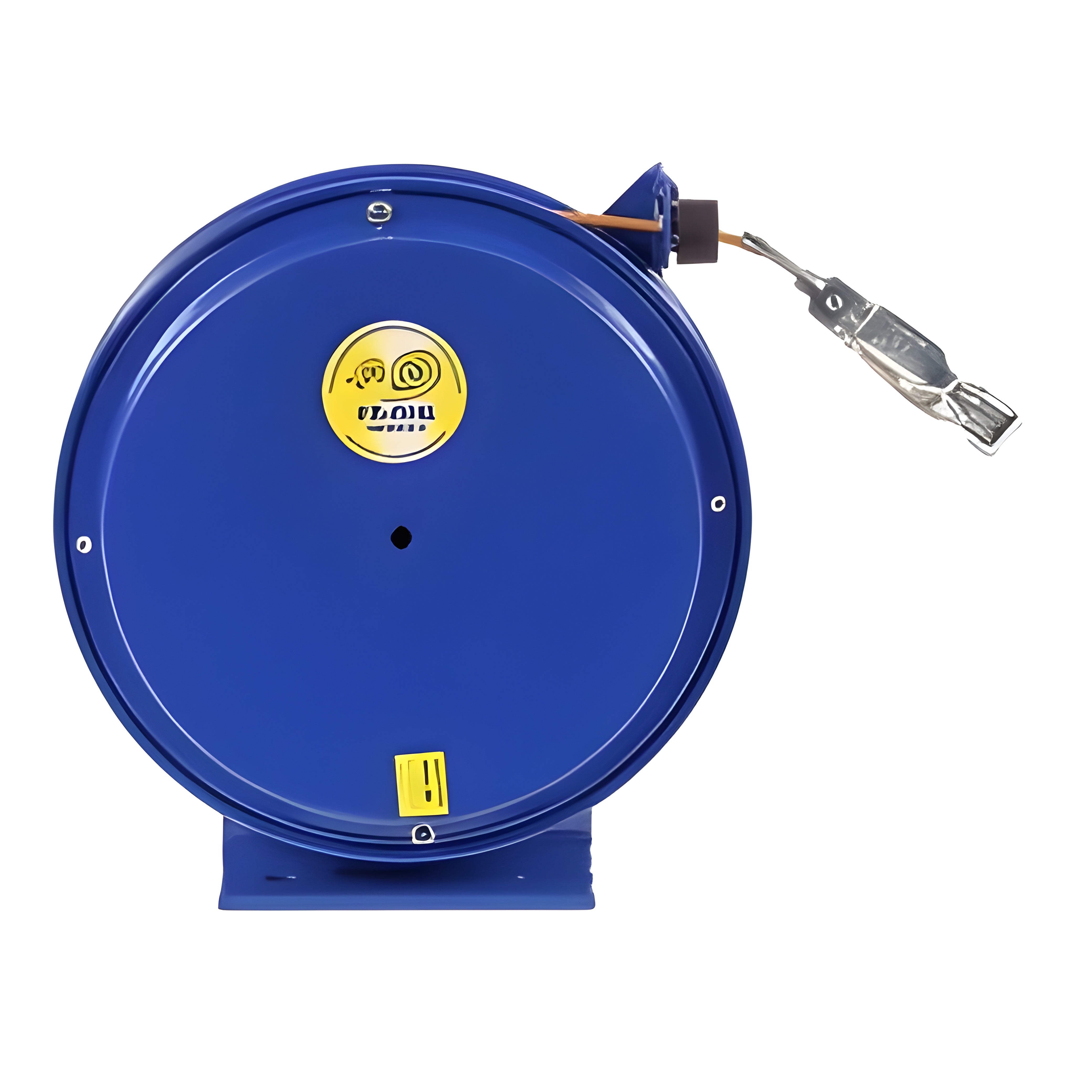 A: The reel features a spring-retraction system for automatic cable rewind, ensuring easy operation and secure cable storage.