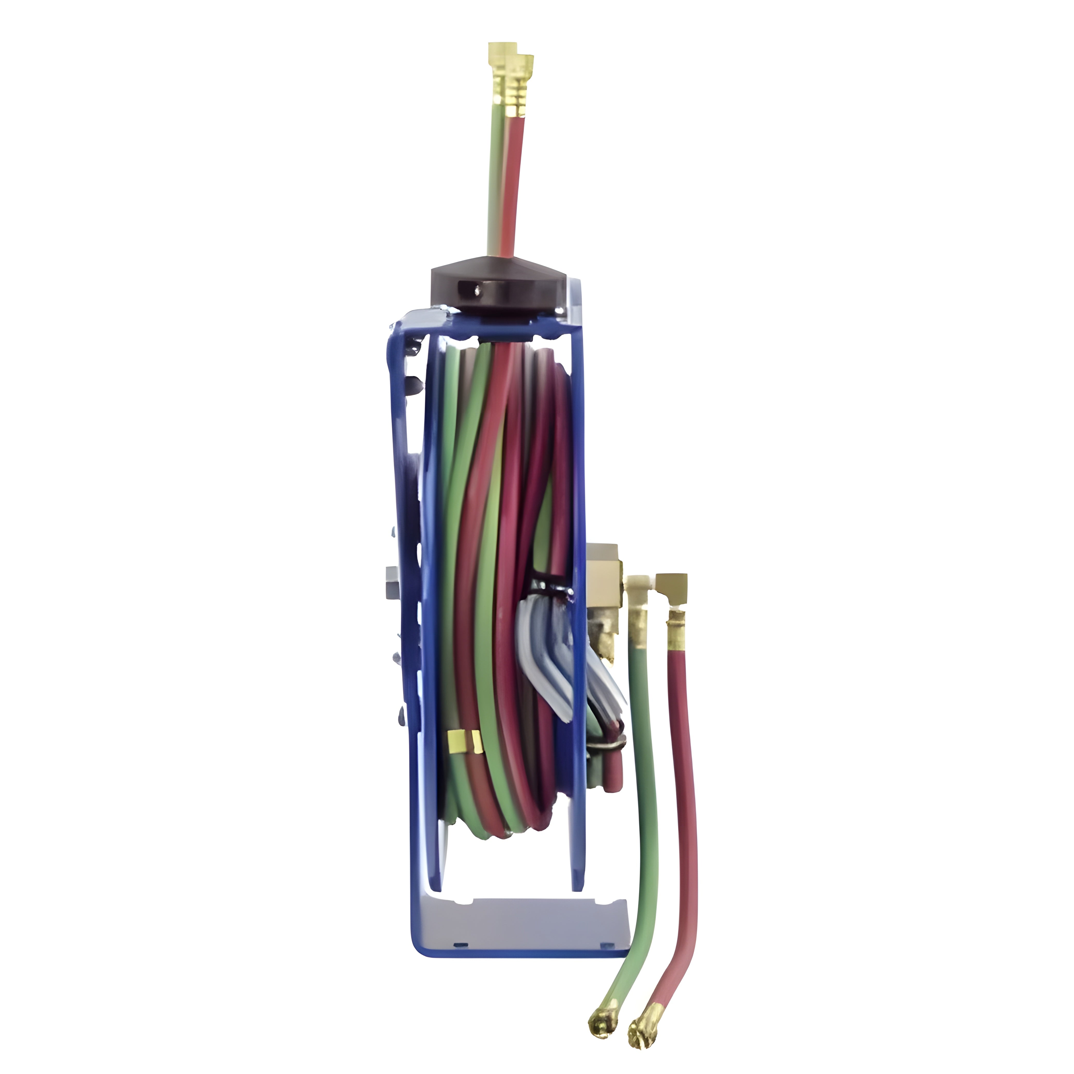 - WELDING GAS SWIVEL - External 90◦ full-flow dual ported brass swivel with VITON seals offering both connections from the same side of the reel. No need to remove the reel from its mount.