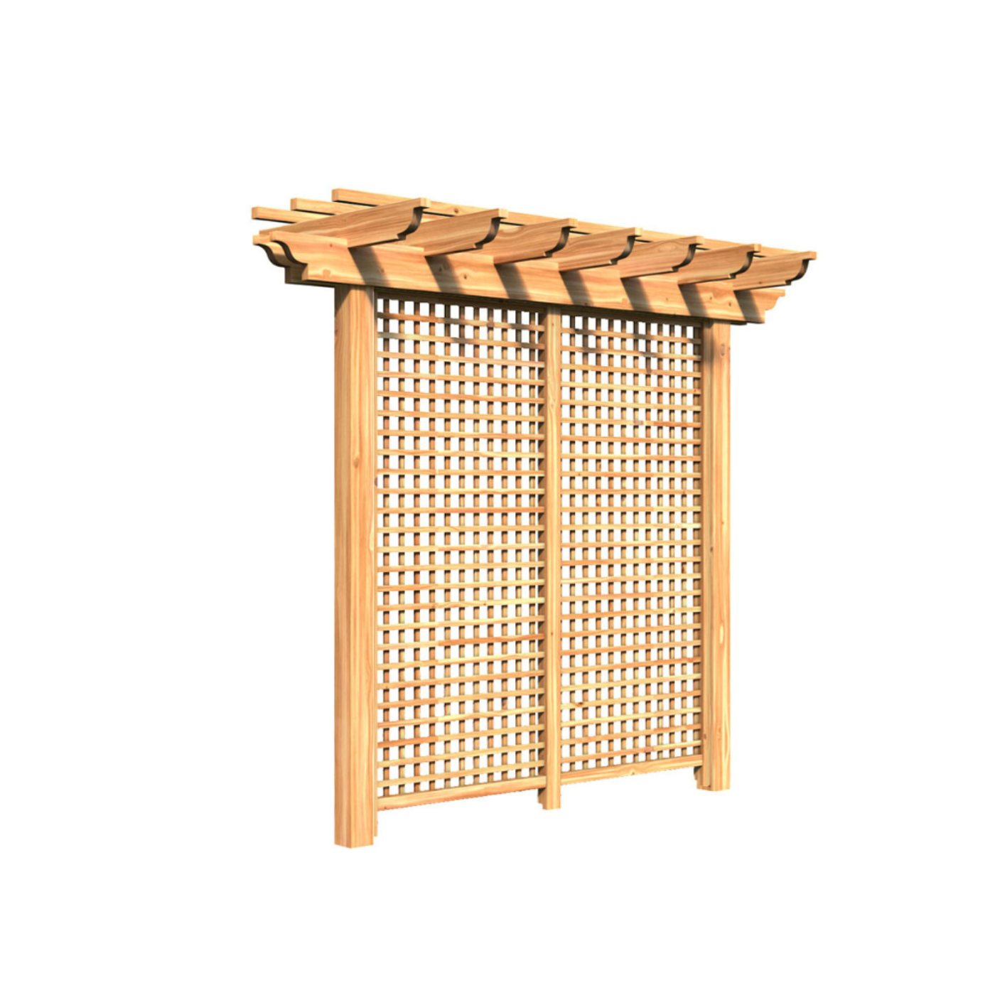 A: The decorative lattice panels add extra shade, a touch of privacy, and support for climbing plants like vines and flowers.