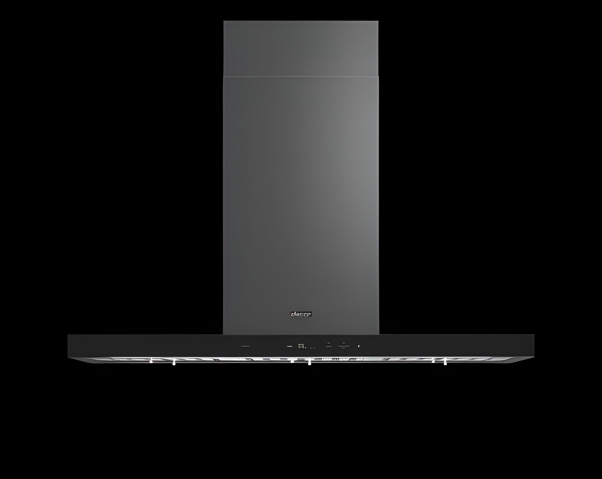 Elegant and Modern Design: The Dacor DHD54U990IM 54-inch Island Hood in Graphite Stainless features sleek lines and a sophisticated glass touch control panel, enhancing the aesthetics of any contemporary kitchen.