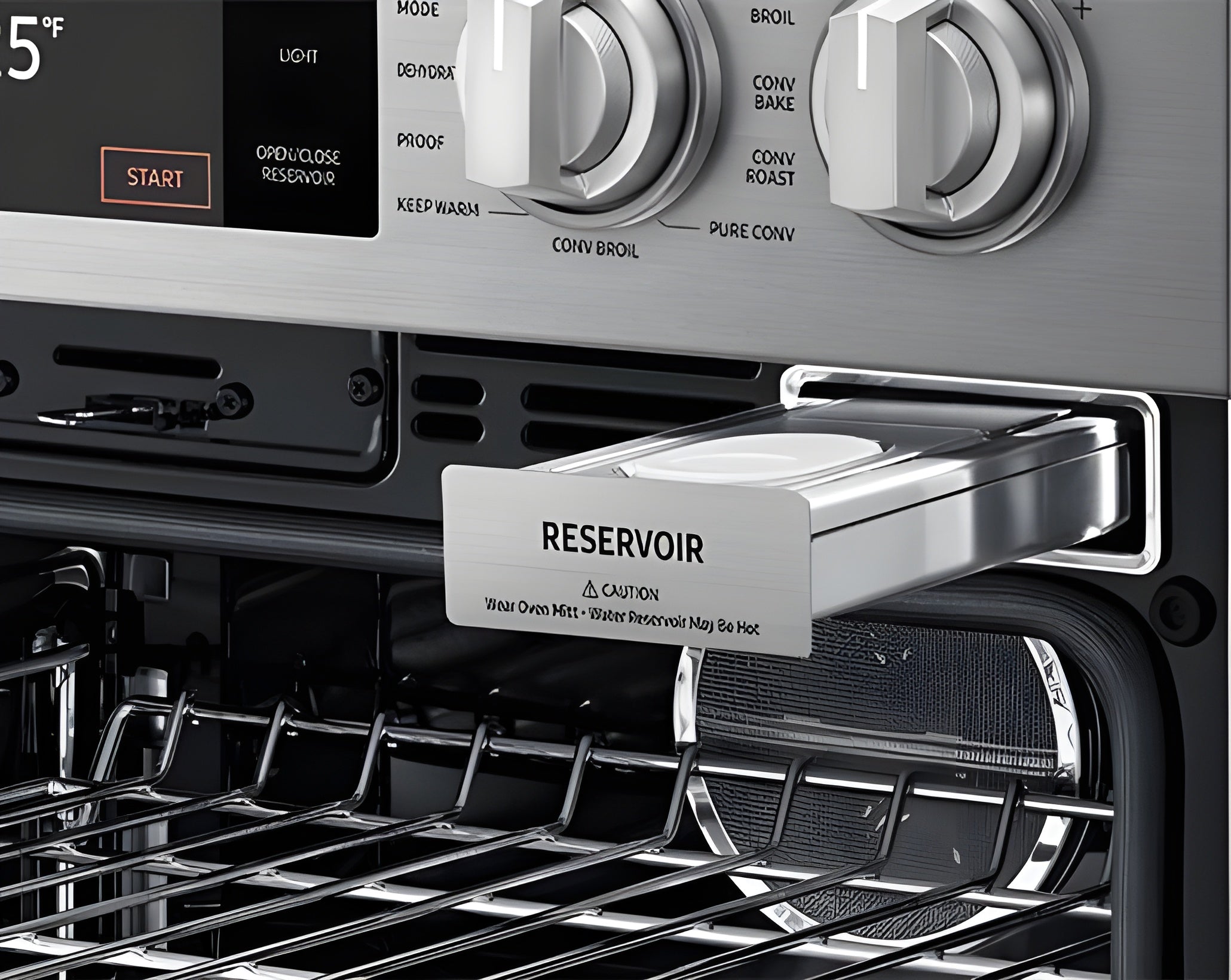 A: The steam-assisted function infuses moisture into your food while cooking, helping to retain tenderness and juiciness while providing a crisp, golden finish.