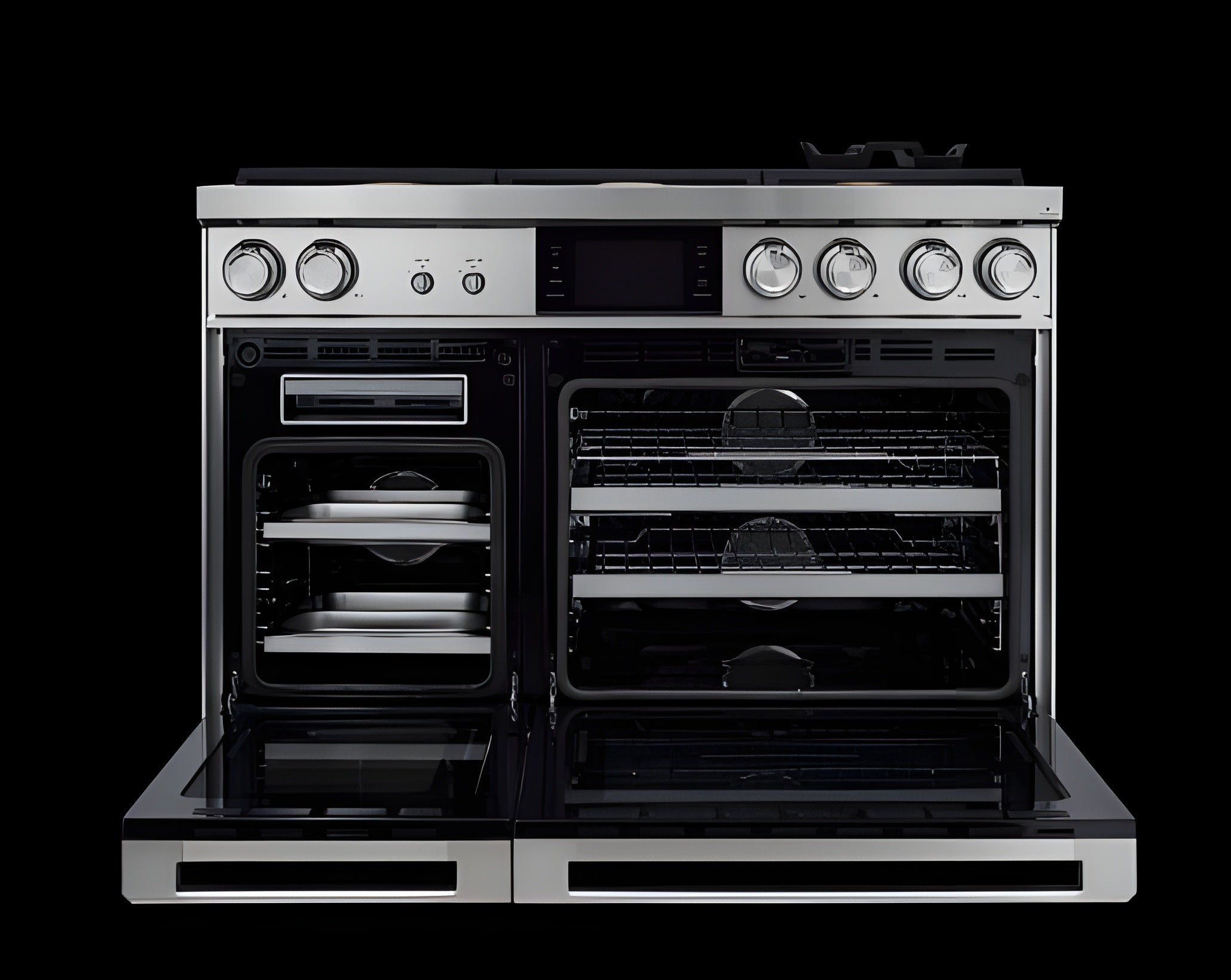 A: It includes a spacious double oven with a total capacity of approximately 6.9 cubic feet, perfect for preparing multiple dishes at once.