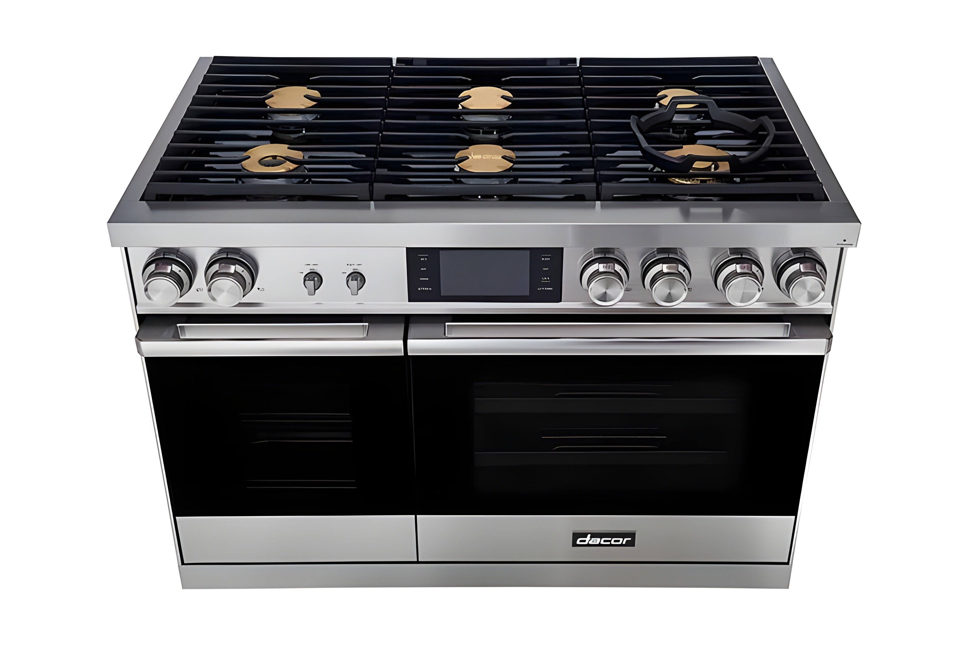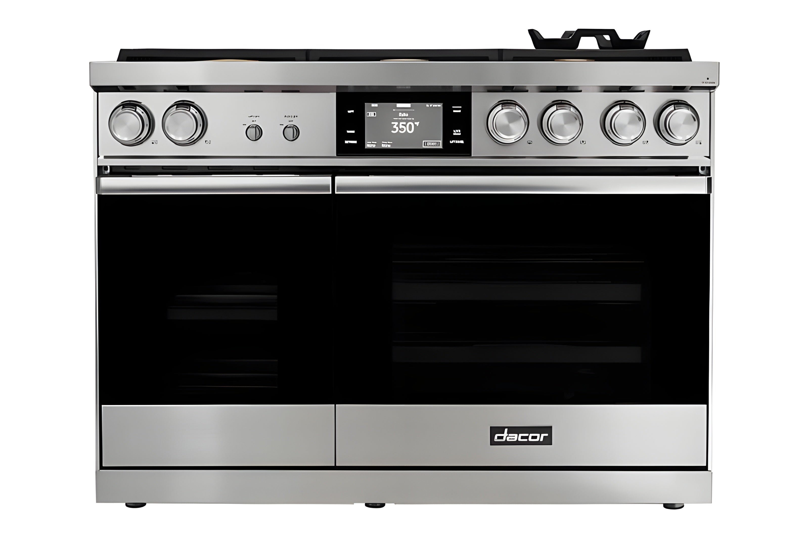 The DOP48M86D 48-Inch Dual-Fuel Steam Range from the Modernist Collection combines power and precision for home chefs seeking professional-grade performance. This versatile range includes 6 sealed burners with options for high-powered heating up to 22,000 BTU and true simmer capabilities. The four-part convection system utilizes heat, air, baffle, and filter elements, ensuring even cooking across all racks. With real steam and convection cooking modes, it excels in baking, roasting, and searing. The appliance features a spacious 4.8 cu. ft. oven and an additional 1.8 cu. ft. smaller oven, offering flexibility in cooking multiple dishes simultaneously. Designed with user convenience in mind, it includes Illumina knobs, ambient lighting, and Wi-Fi control via the Dacor iQ Kitchen app, which enables remote monitoring and integration with compatible hoods. Additionally, the self-cleaning and GreenClean modes ensure easy maintenance, making this range an ideal choice for any kitchen.