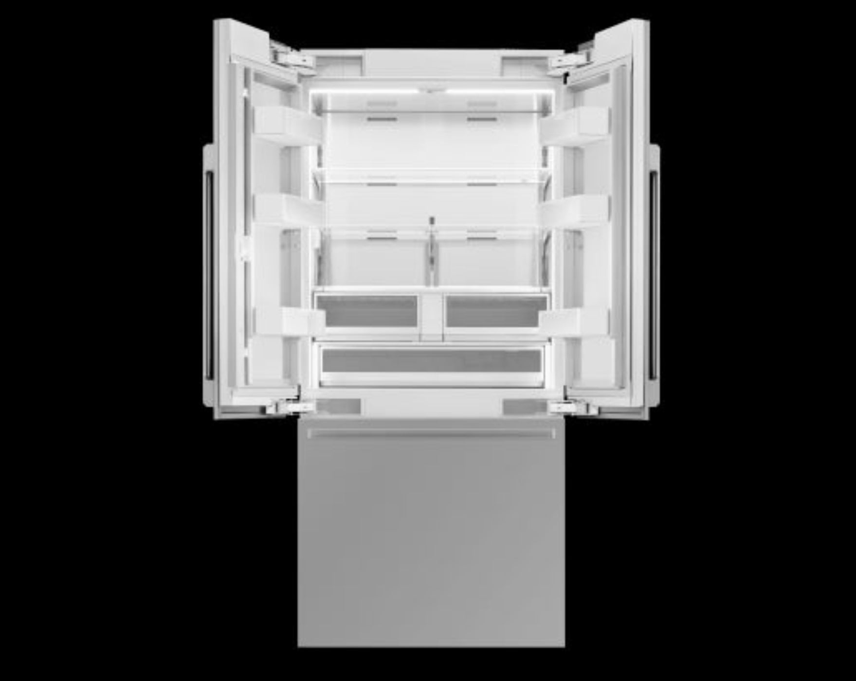 Interior Configuration | Full Width Shelves - Refrigerator: 2 ea Adjustable Shelves - Refrigerator: 2 ea Shelf Material: Tempered Glass Shelves with Metal Trim Full Extension Drawers at 90° Door Opening Angle: Yes FreshZone Drawer: Yes - Cheese (37°F) / ColdDrinks (33°F) / Meat (29°F) Humidity Control Drawer: 2 ea Door Bins: 6 ea |