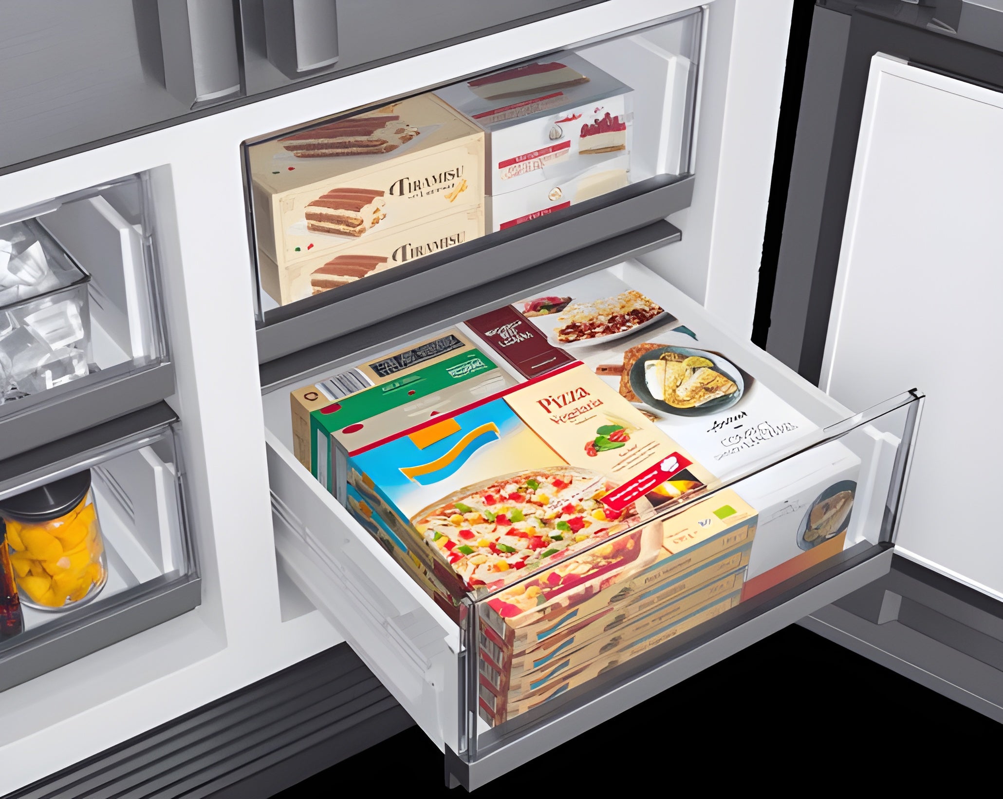 Full Width Shelves - Refrigerator : 1 ea. Adjustable Shelves - Refrigerator : 4 ea. Shelf Material - Refrigerator : Tempered Glass Shelves w/Metal Trim Full Extension Drawers at 90° Door Opening Angle : Yes FreshZone Drawer : Yes - Cheese (37°F) / ColdDrinks (33°F) / Mea.t (29°F) Crisper Drawers : 2 ea. Door Bins -Refrigerator : 6 ea. Freezer Drawers : 4 ea. |