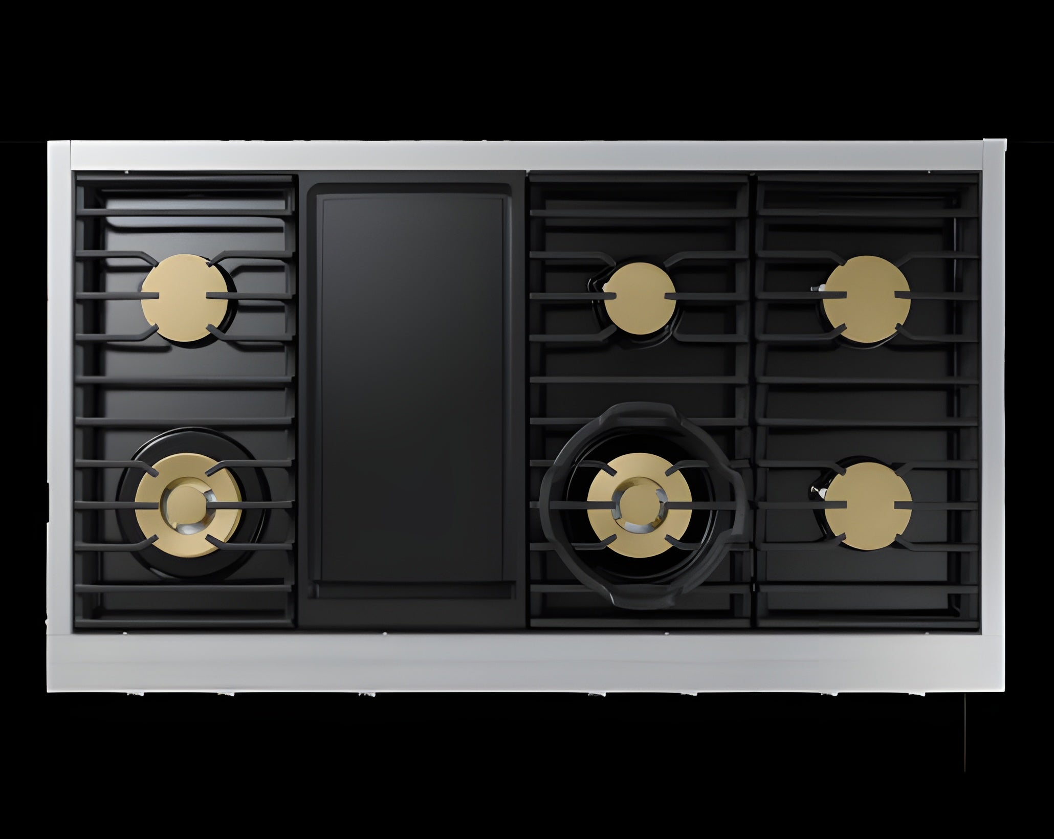A: The DACOR DTT48T963GS-KT is a professional-grade 48" rangetop designed for natural gas or liquid propane, offering powerful performance and a sleek silver stainless steel finish.