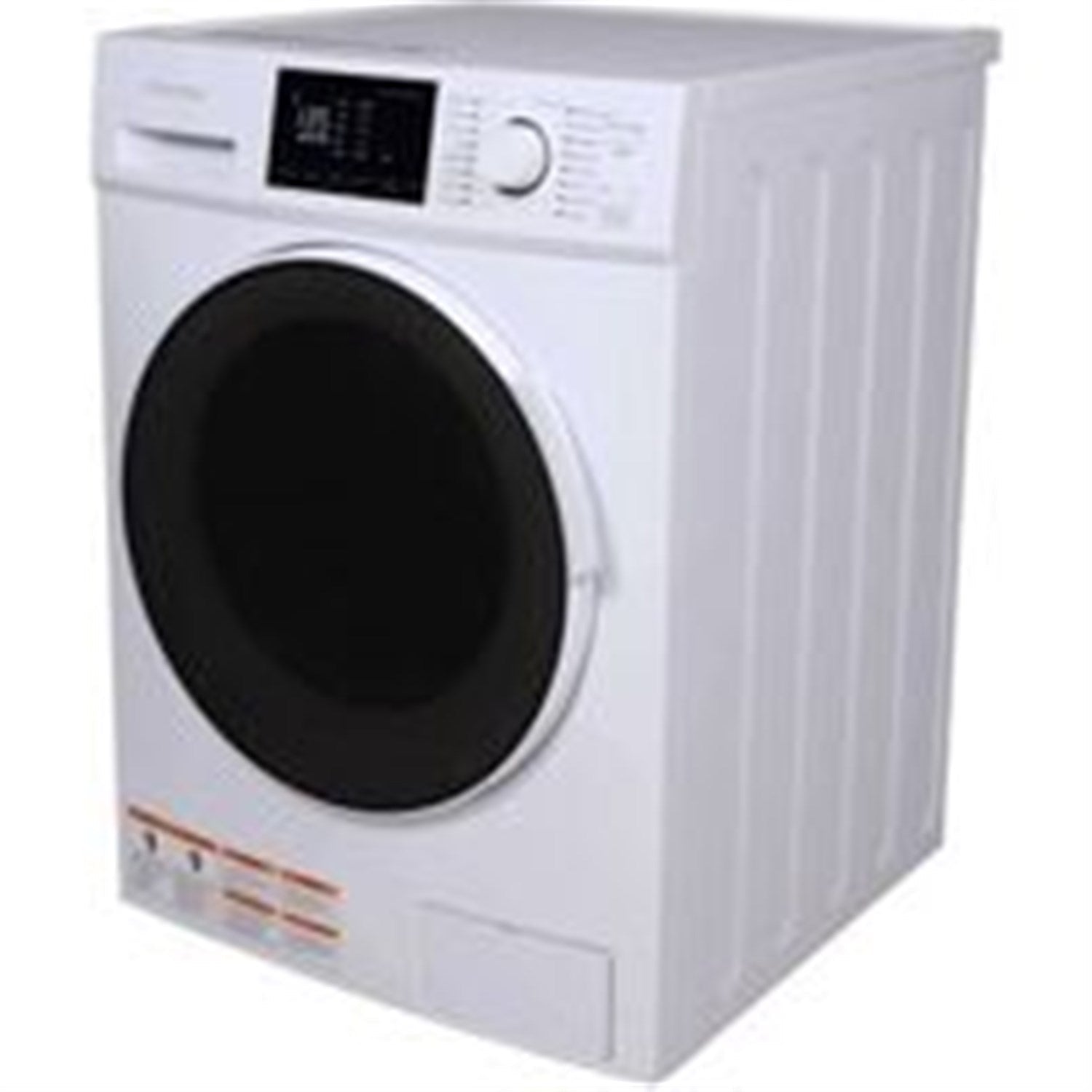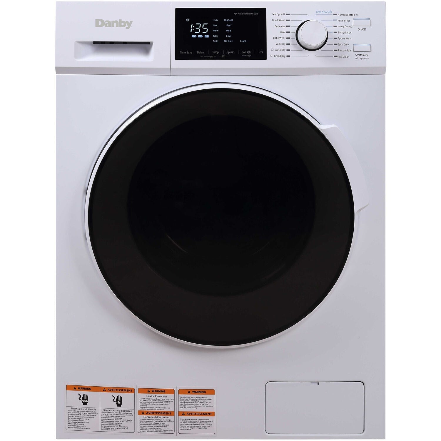 Get the convenience of in-home laundry, even in small spaces, with this 2.7 cu. ft. All-In-One Ventless Washer Dryer Combo by Danby. The compact size (24 in.) and front-load design give you plenty of options on where to store your unit. Choose between 14 wash cycles and 2 drying cycles to accommodate all your various laundry needs. This washer dryer combo offers My Cycle in., a feature that allows you to customize your washing cycle and remember your favorite program for next time. Additional features include a durable stainless steel drum, childproof lock, overflow protection and a time delay function.