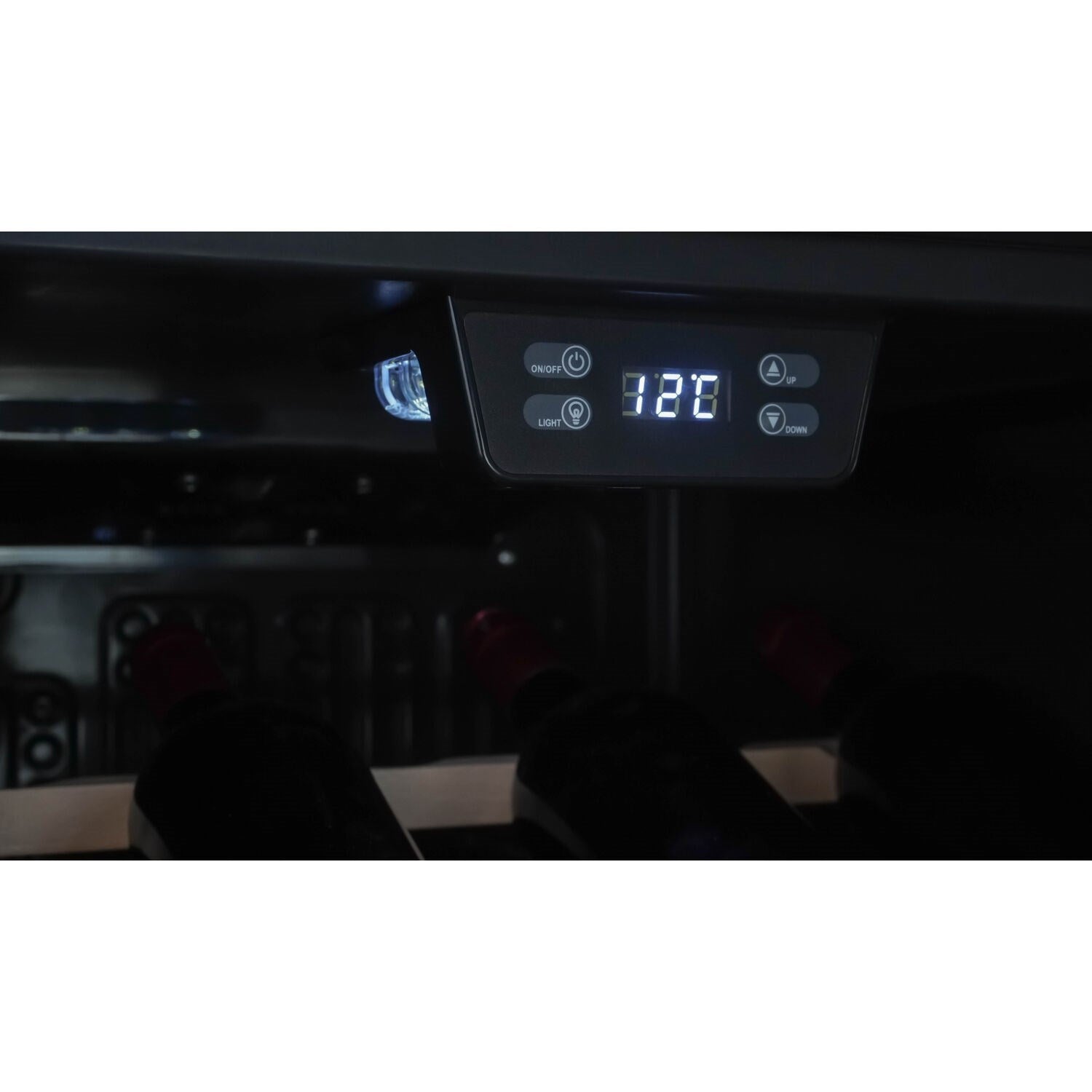 Its temperature range is 41F to 64F, and it can be viewed and monitored from the outside through its glass door. It has a reversible door, a door lock, a digital thermostat with an LED display, and natural beechwood shelving. This cooler's silent operation, as well as the 12-month parts and labor guarantee, will put your mind at ease.