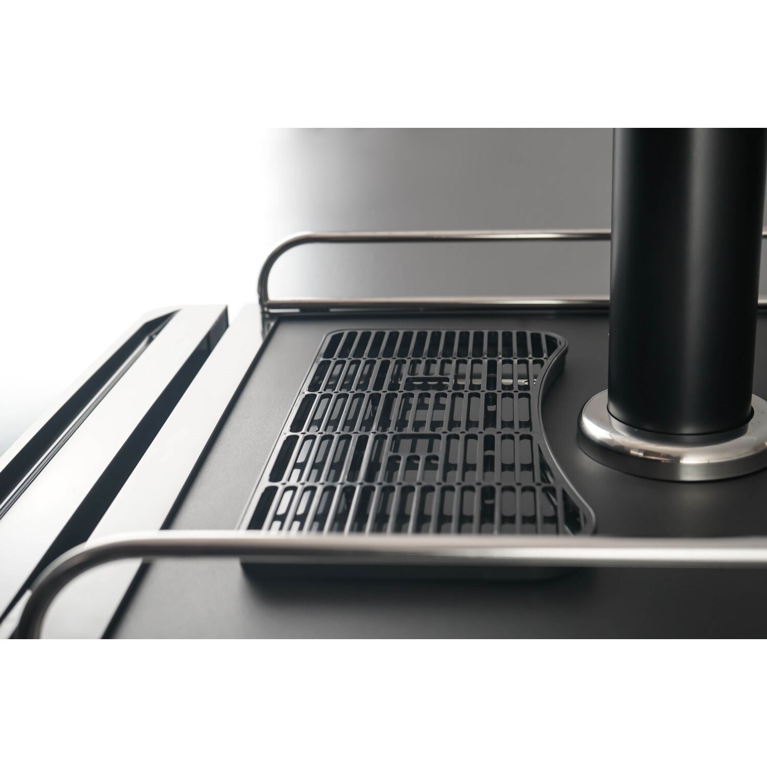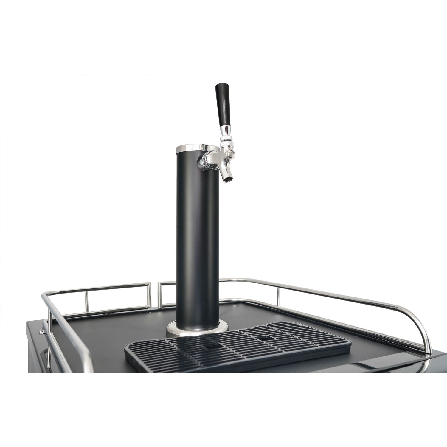 - Chrome guard rail and drip tray for a clean pour and easy cleanup