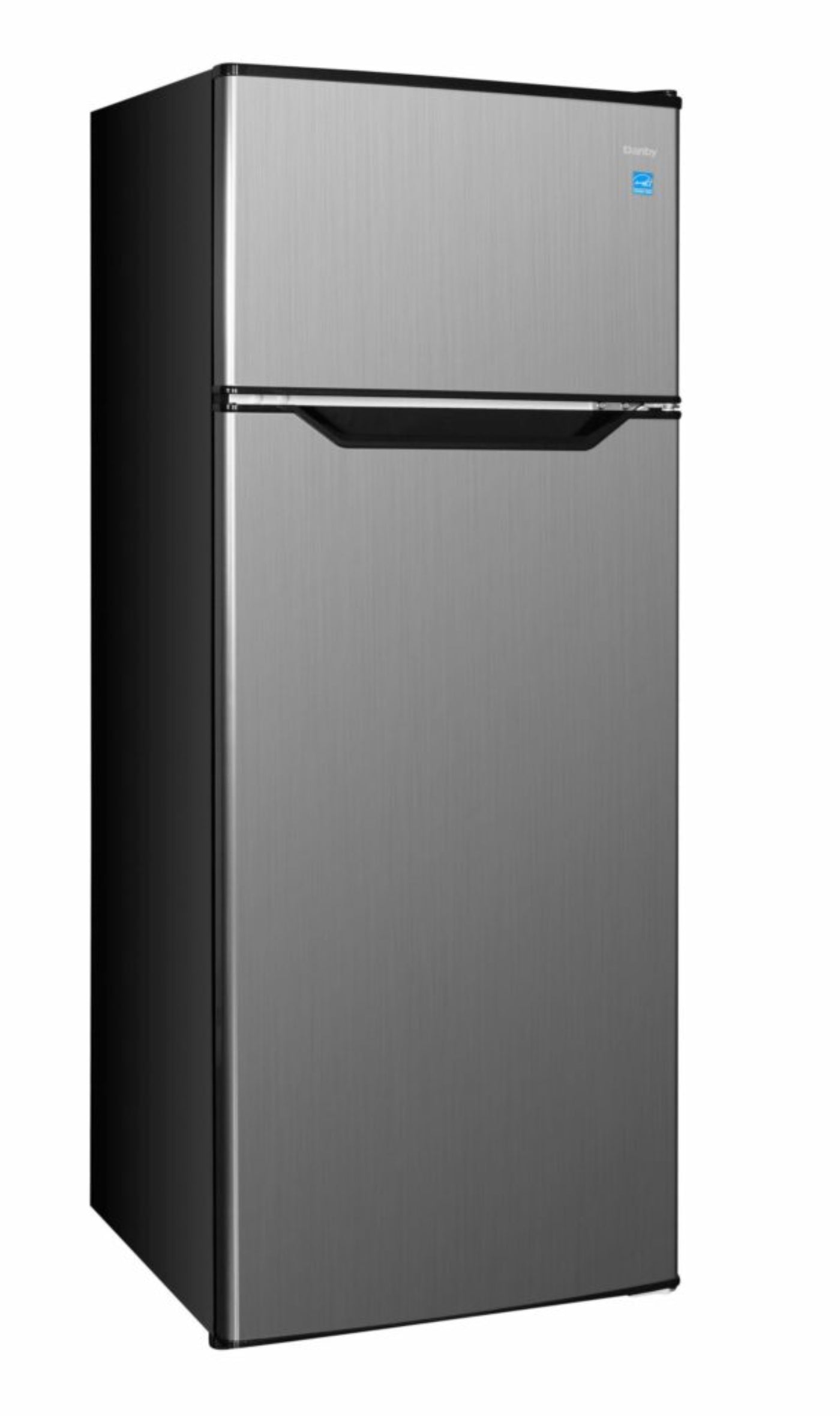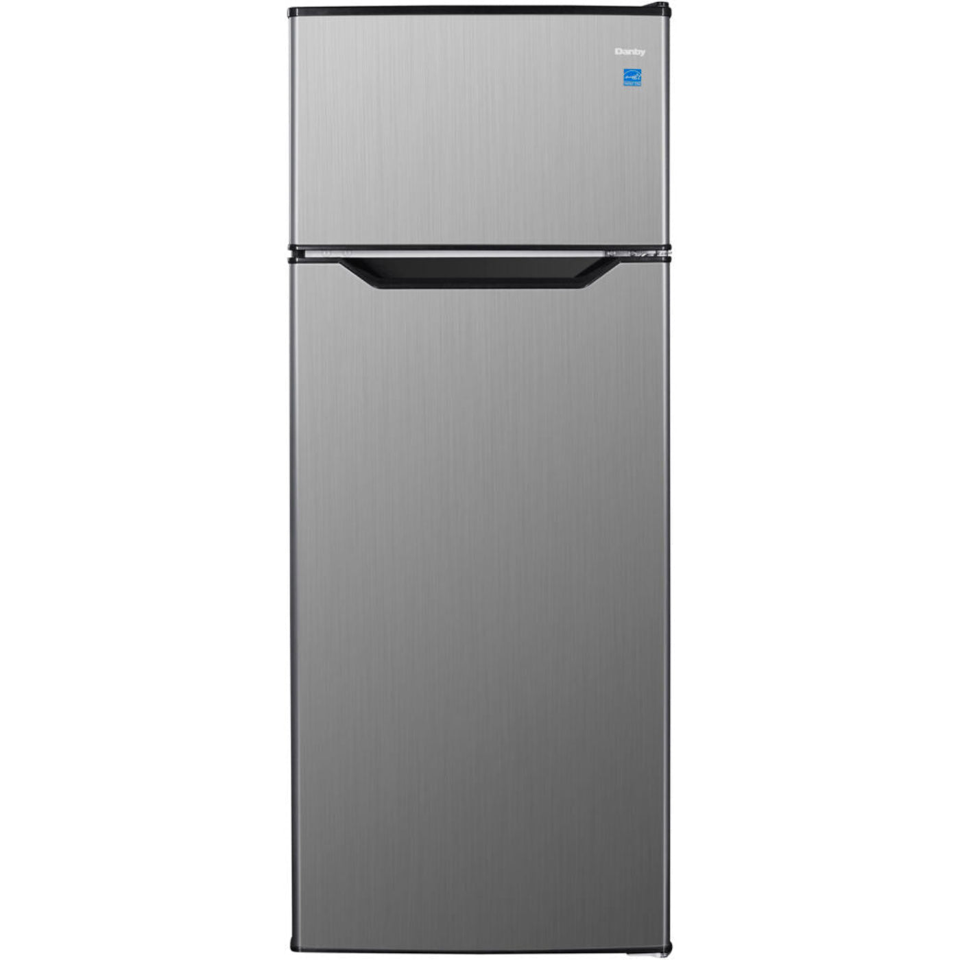 Discover the styling and simplicity of Danby’s 7.4 cubic feet (210 L) stainless-steel top-mount refrigerator, perfect for small space living in a condo, apartment, or townhouse! Reduce your electricity bill and save on energy with this ENERGY STAR® rated model. Avoid clutter with two adjustable glass shelves in the fridge and a top-mount freezer section with one adjustable wire shelf. This model also comes with a transparent crisper bin to keep all your favorite vegetables and fruit fresh. Its reversible door hinge allows for a right or left-hand swing so you can fit this unit in almost any space, while its three-door shelves and tall bottle storage make it easy to keep your fridge organized. Choose automatic defrost for the refrigerator and manual defrost for the freezer compartment for easy maintenance all year round.