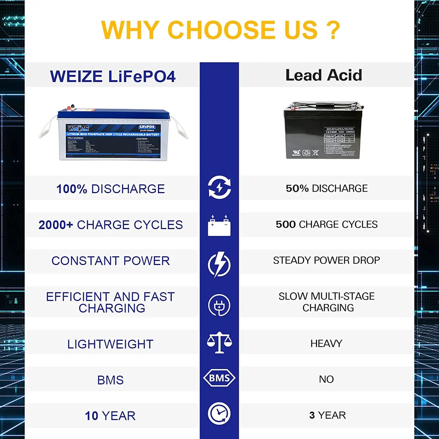 Q: What is the WEIZE 24V 200Ah LiFePO4 Lithium Battery?