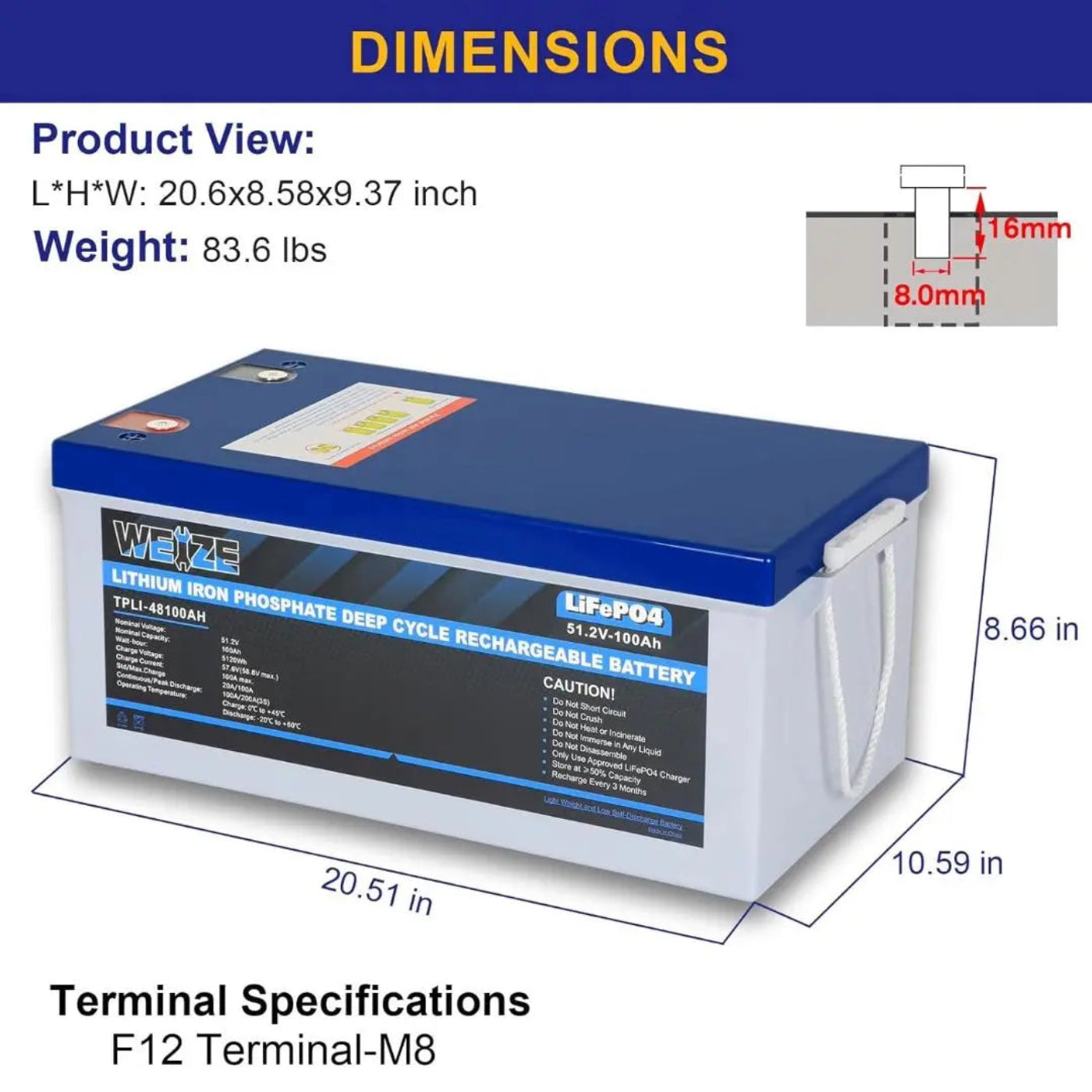 A: The WEIZE 51.2V 100Ah LiFePO4 Lithium Battery is a high-capacity, deep-cycle lithium battery designed for use in applications such as solar systems, RVs, and off-grid setups.