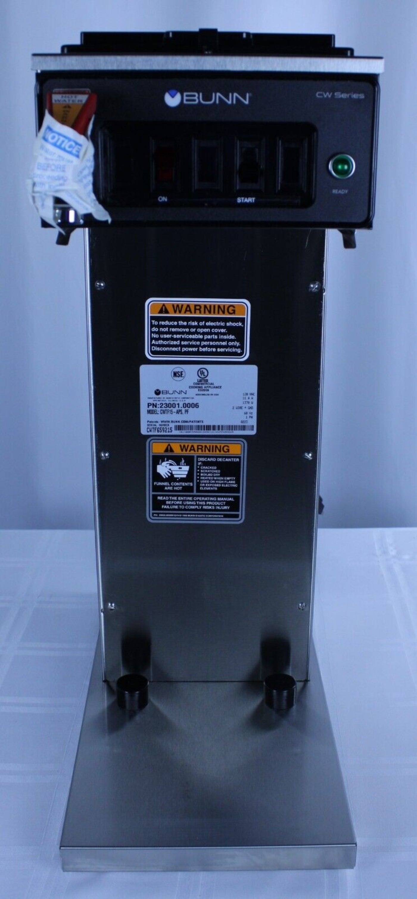 The Bunn CWTF15-1 is NSF and UL listed, meeting rigorous standards for safety and sanitation in commercial foodservice equipment.