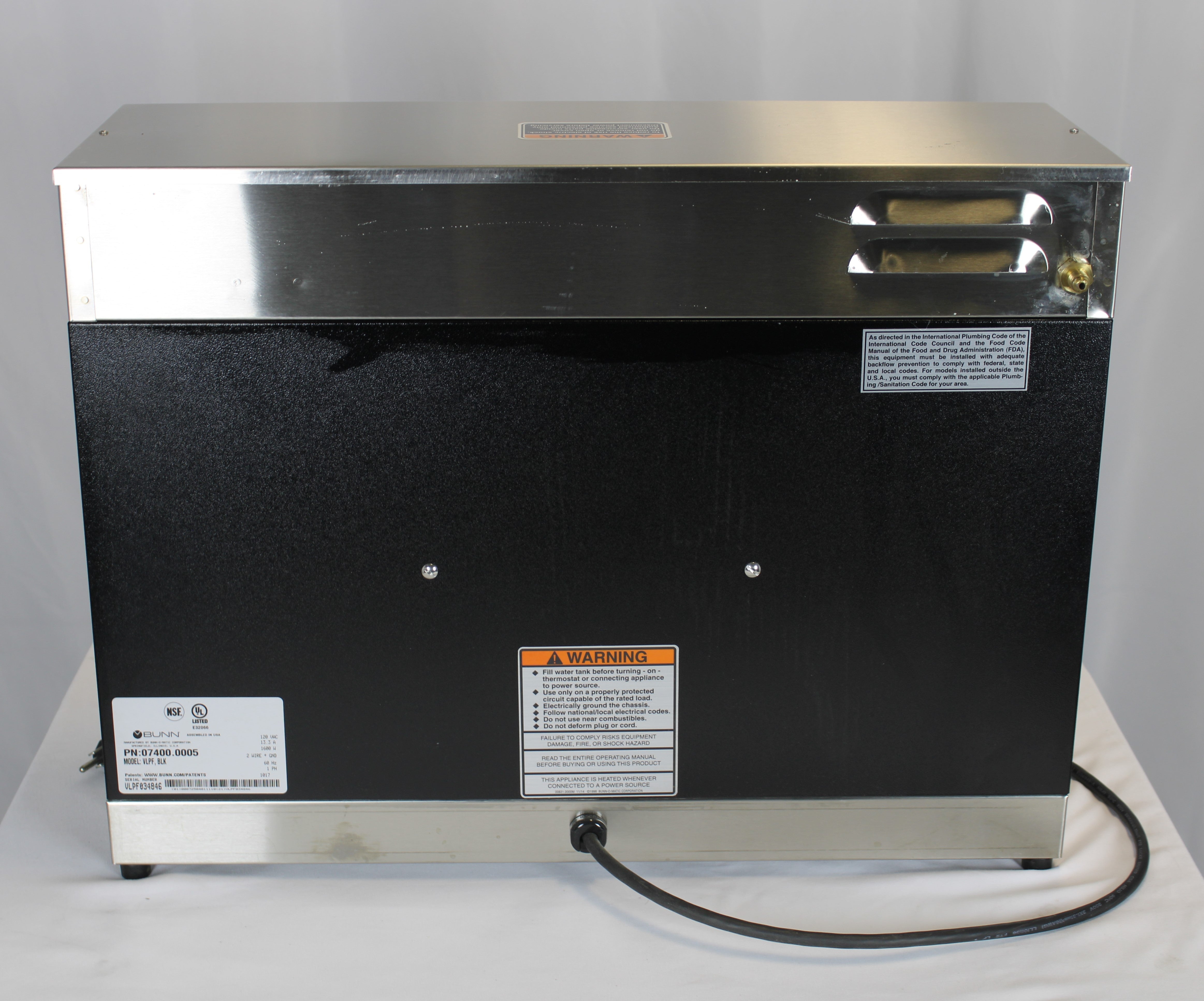 Q: What is the warranty on the Bunn 07400.0005 VLPF?