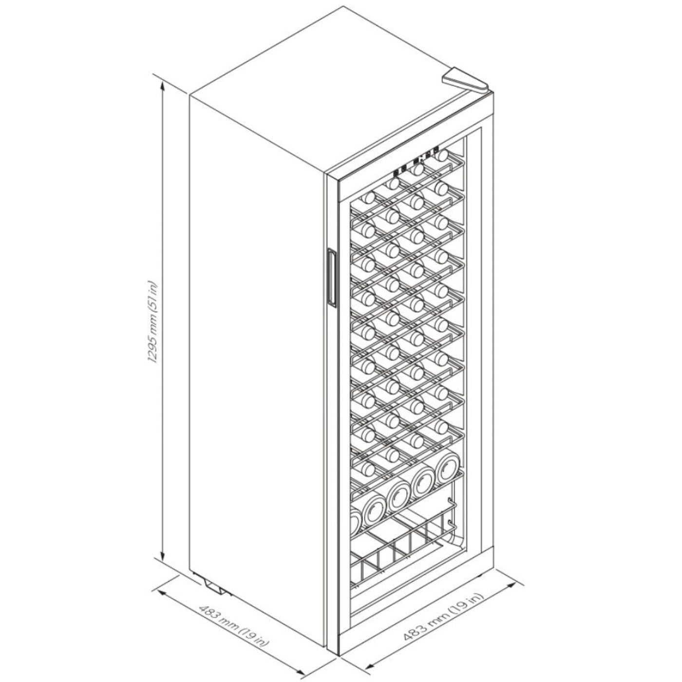 Introducing the Dometic Wine Cooler C55F, a 19-inch single-zone wine cooler that elevates any home, restaurant, or hotel bar with its blend of beauty and functionality. This freestanding cooler holds up to 55 Bordeaux bottles, ensuring the perfect climatic conditions for wine storage and aging. With temperature control settings conveniently located on the door, you can easily maintain an optimal range of 41°F to 72°F. The stylish triple-pane glass door, complemented by stainless steel details and a space-saving built-in handle, adds a touch of sophistication. Inside, a white LED light softly illuminates your collection, while the integrated air circulation system ensures even temperature distribution. Minimal maintenance is required thanks to the auto defrost system.