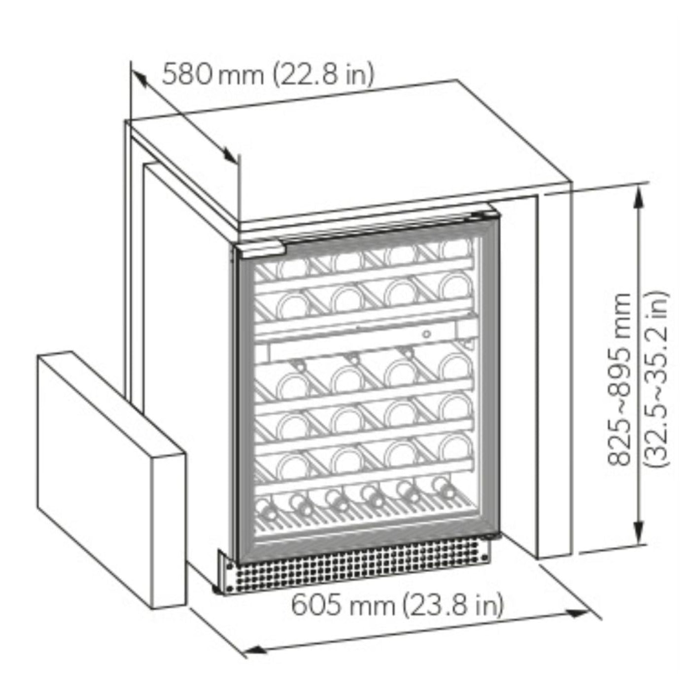 Upgrade your kitchen with the Dometic Wine Cooler D46B, a 24-inch dual-zone wine cooler that blends style and functionality effortlessly. Designed for both freestanding and built-in installations, this cooler holds 46 Bordeaux bottles, elegantly displayed on FSC-certified wooden shelves. It features five removable and sliding wood racks, an adjustable height with customizable feet and plinth, and a reversible door for flexible installation. The triple-pane, low-emission glass door shields your wine from harmful UV light, while the integrated carbon filter and automatic humidity control (50-70%) ensure ideal storage conditions. Minimal maintenance is required, thanks to its automatic defrosting system and low-vibration compressor.