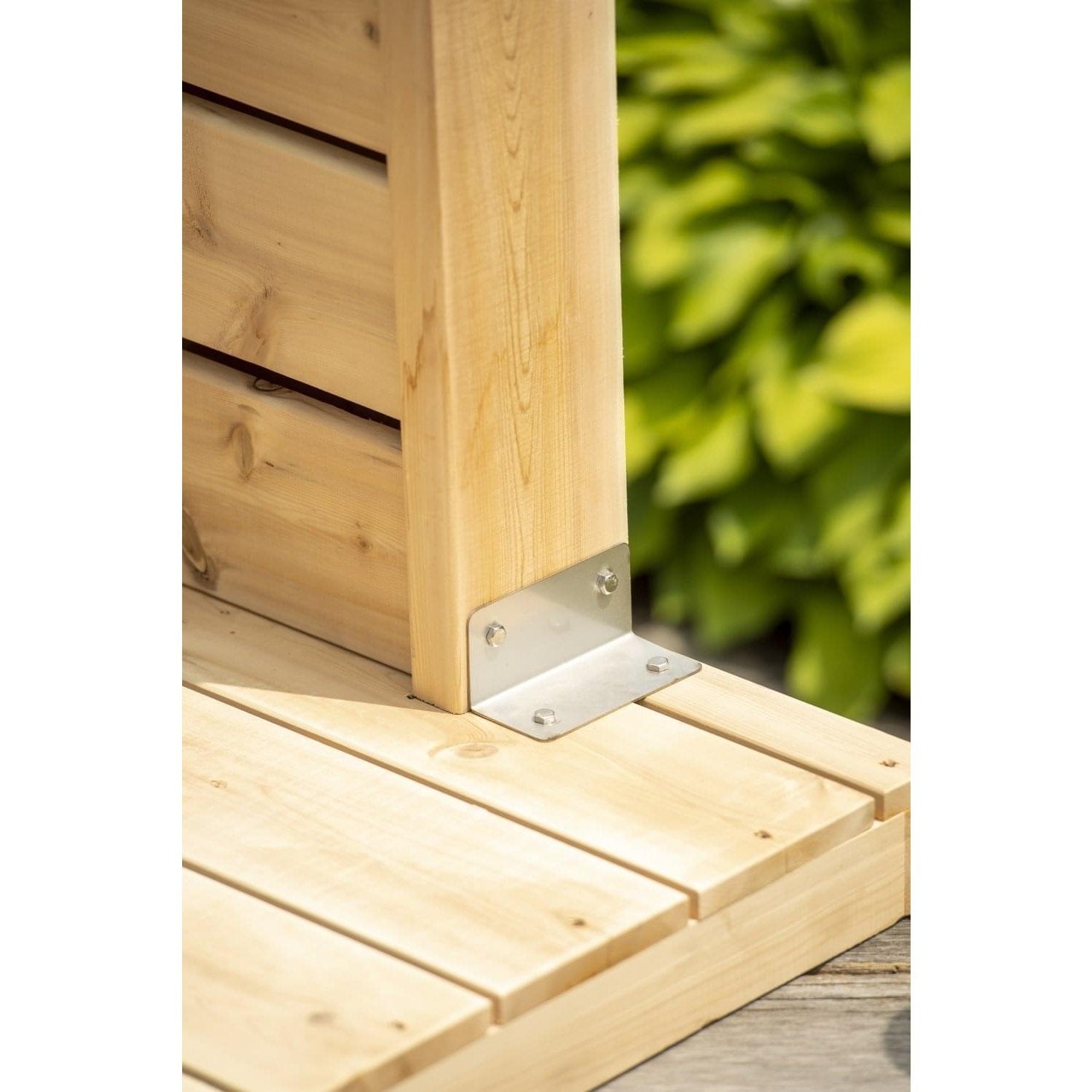 A: Constructed from sustainably sourced Eastern White Cedar and stainless steel hardware for long-lasting outdoor durability.
