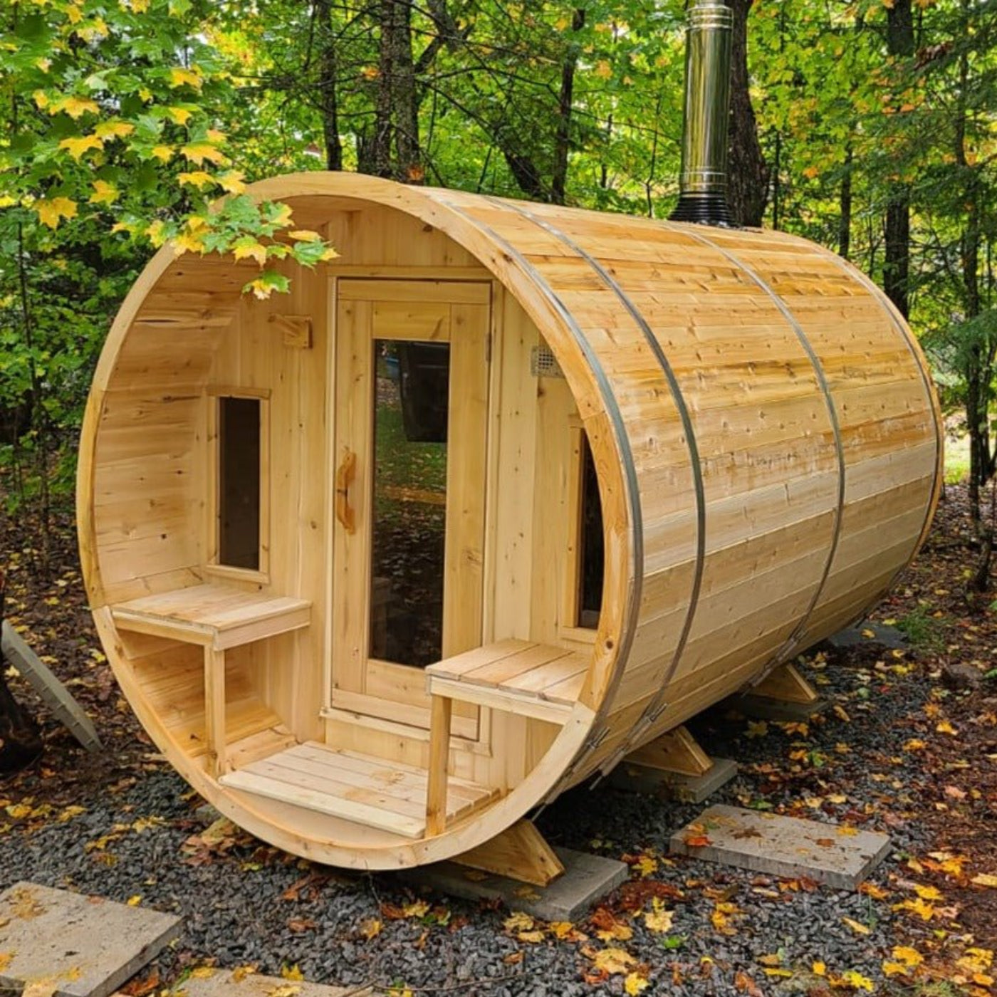 Experience the ultimate outdoor relaxation retreat with the Canadian Timber Tranquility Barrel Sauna. Handcrafted from Eastern White Cedar, this sauna is designed for all-weather outdoor use, offering superior resistance to rot and decay. The sauna’s natural light-colored finish ensures it looks beautiful now and continues to age gracefully.