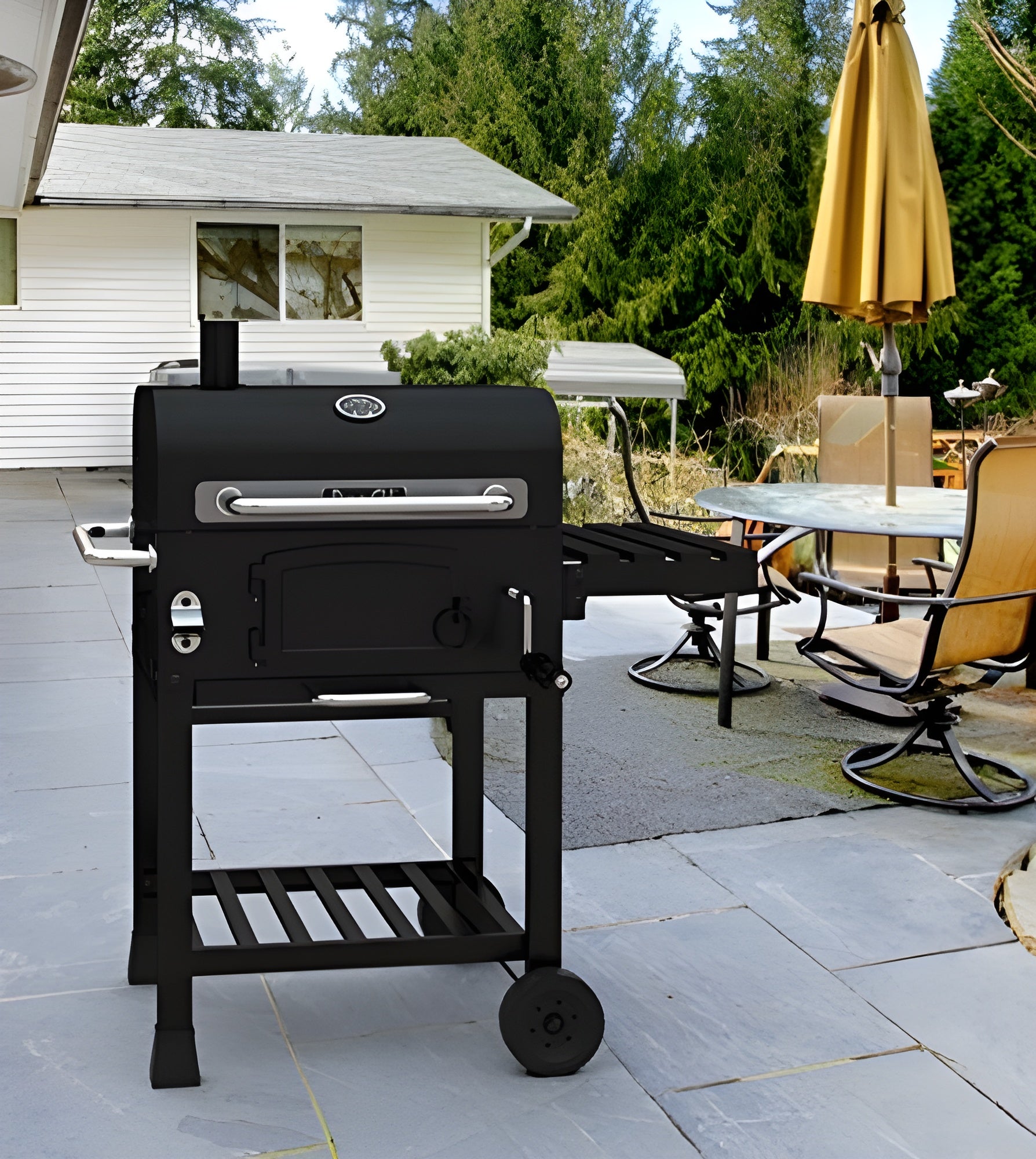 Q: How is the Dyna-Glo DGD381BNC-D Compact Charcoal Grill for outdoor cooking?