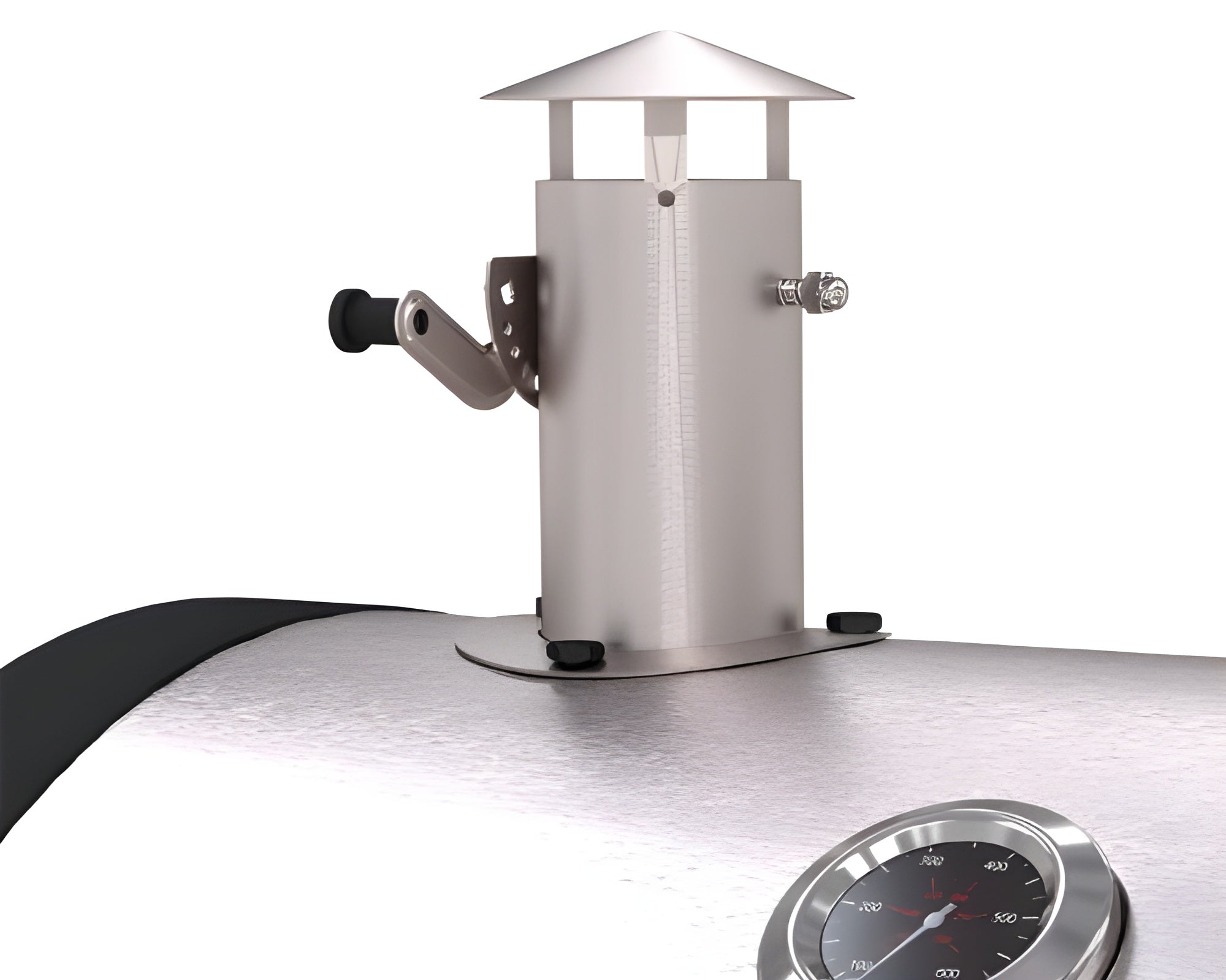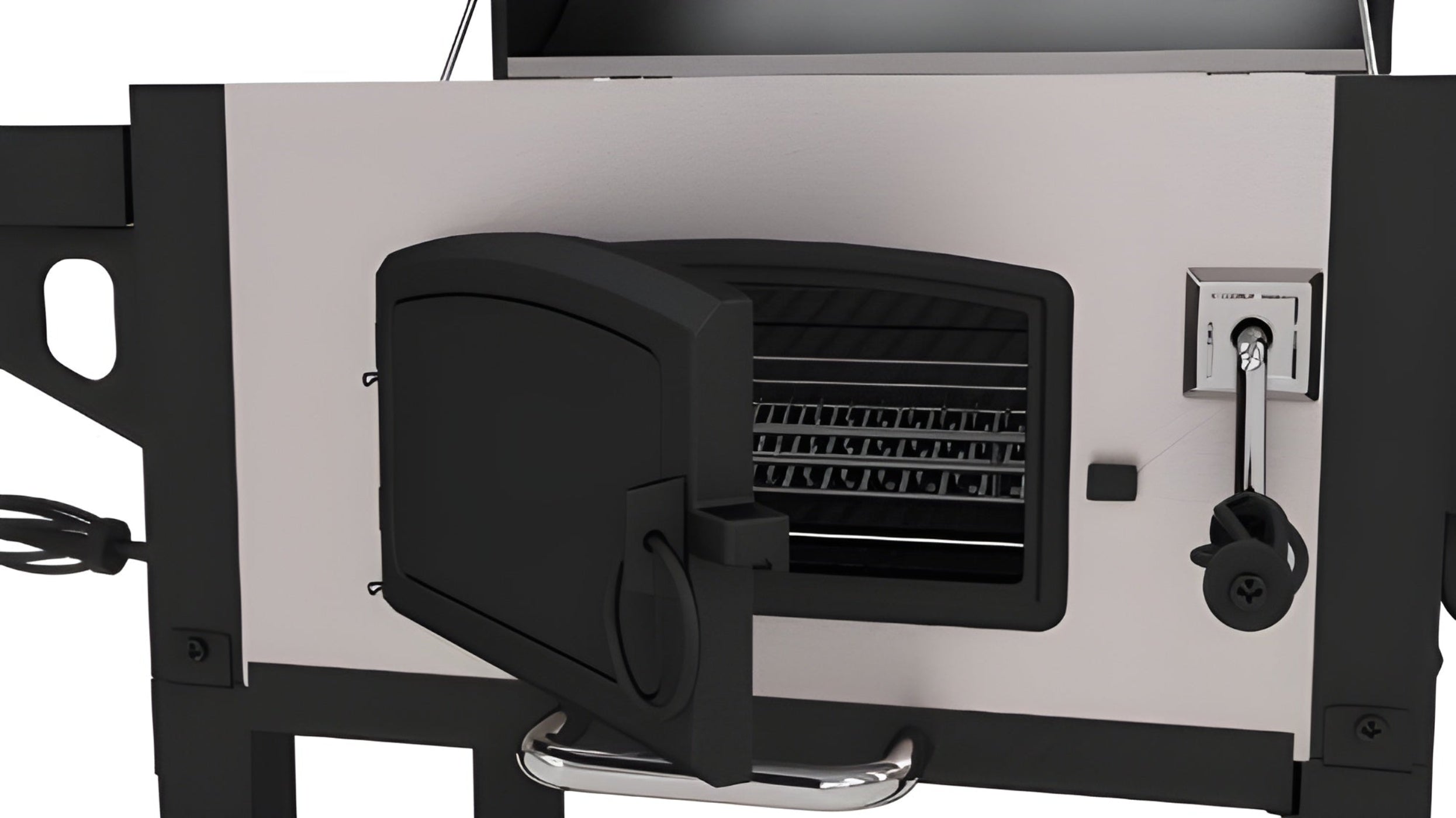 Stainless steel smoke stack with adjustable flue for heat control, stainless temperature gauge and heavy duty steel charcoal access door.Protect your grill with a custom-fit Dyna-Glo premium cover - Model DG405CC (Sold Separately)