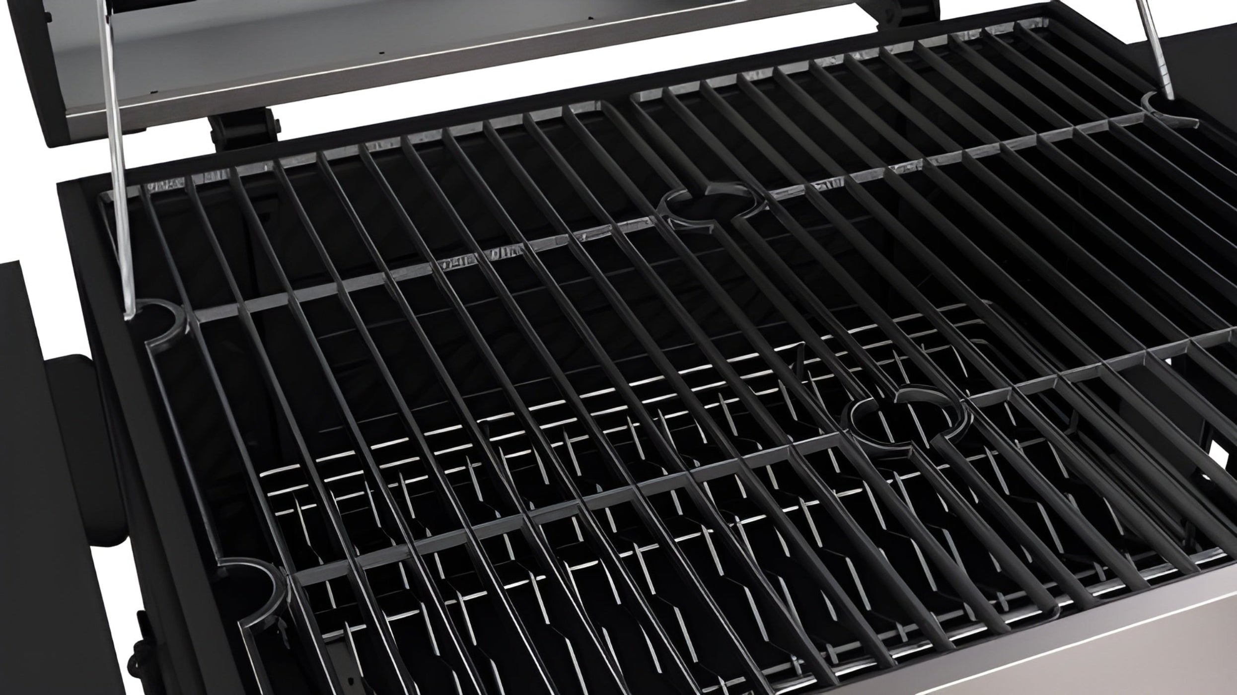 2 Heavy-duty, porcelain enameled, cast-iron cooking grates retain heat for searing food and locking in natural juices