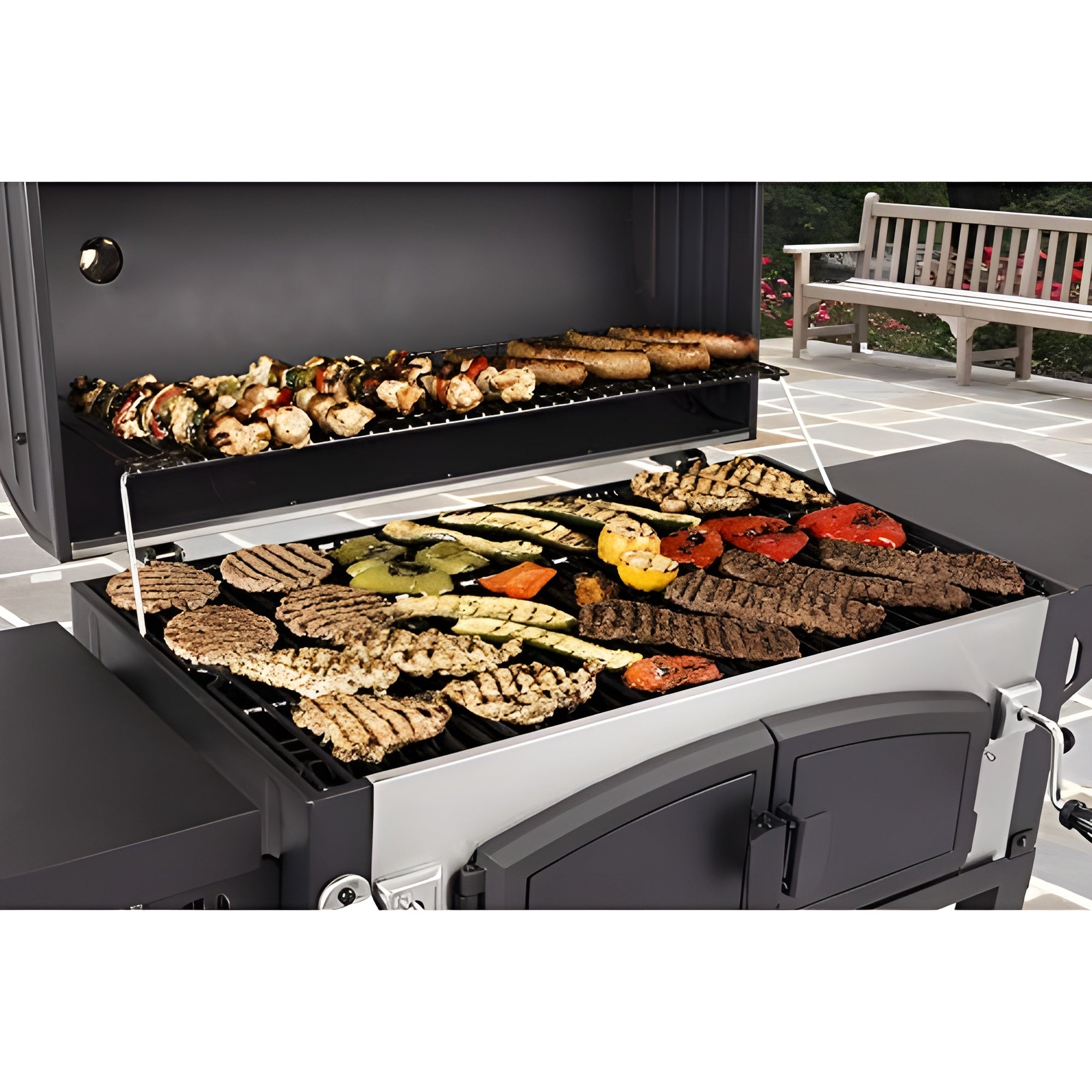 A: The Dyna-Glo DGN576SNC-D is a premium, extra-large dual chamber charcoal grill designed for grilling large amounts of food. It offers a spacious cooking area with dual chambers for versatile grilling, allowing you to cook different foods at different temperatures simultaneously.