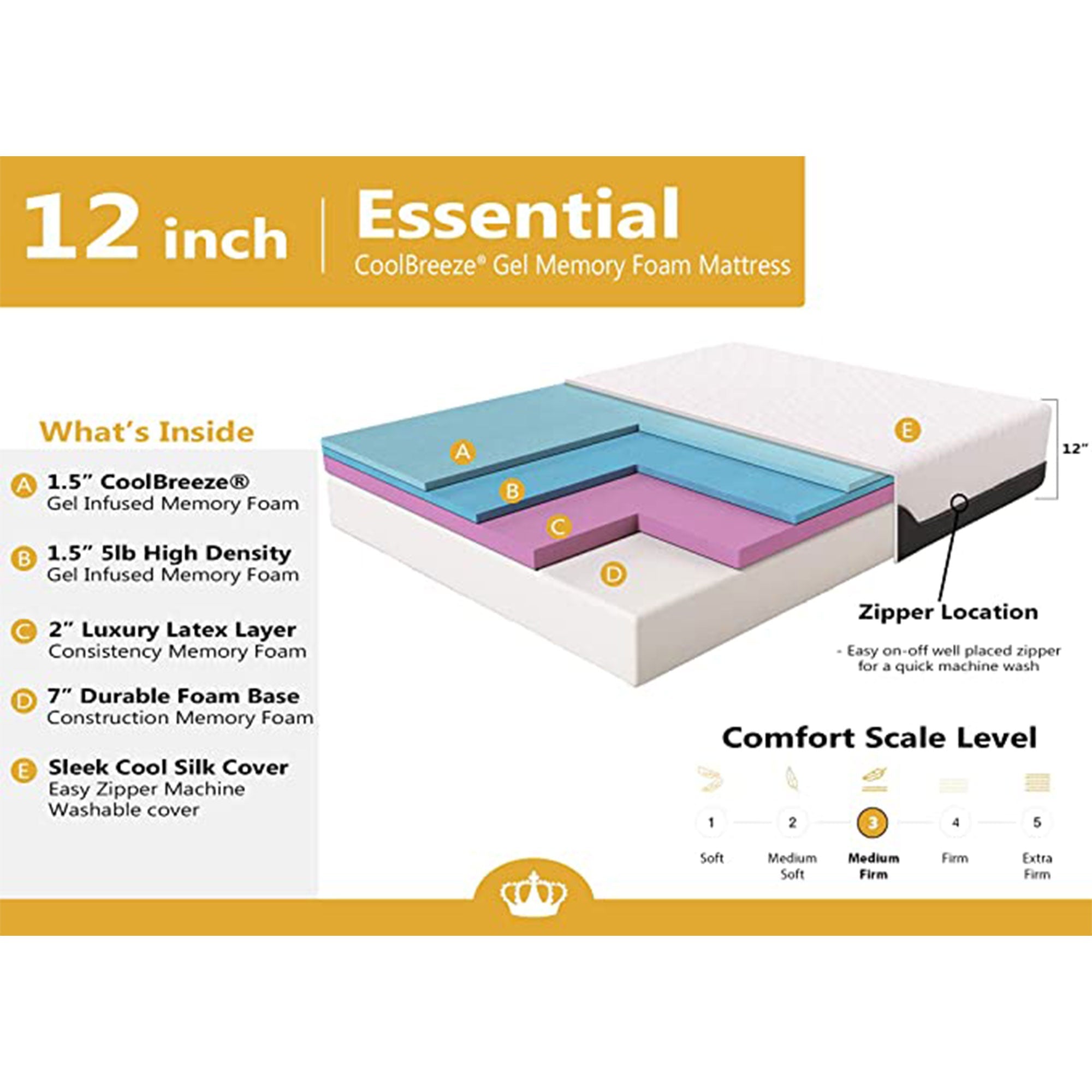 Wake up ready to take on the day with a full night's sleep with Dynasty Mattress's CoolBreeze Gel Memory Foam Mattress in Twin XL.After a long day ensure you get a restful sleep to recharge. Unmatched comfort and quality produce this gel memory foam mattress that conforms to your body for ultimate relaxation. With a firm support style, this mattress perfectly cradles side, back, and stomach sleepers. Up to 5 pounds of gel is infused into the body-contouring memory foam to induce a much better cooling effect and provide optimal rest. Advanced cooling technology actively wicks away body heat and keeps you chilled during the warmest summer hours.The memory foam core withstands a wide array of diseases and irritants. A cool silk cover provides a modern, sleek look that's easily removable and machine washable, so cleanup remains hassle-free. This bed is compatible and works with most bases and foundations such as box springs, platforms, and slats; (all not included). This compact design makes the setup a breeze by removing the plastic, unrolling the mattress, and letting it expand.Treat yourself to uninterrupted sleep and rest while remaining cool and relaxed with the CoolBreeze Gel Memory Foam Mattress from Dynasty Mattress.