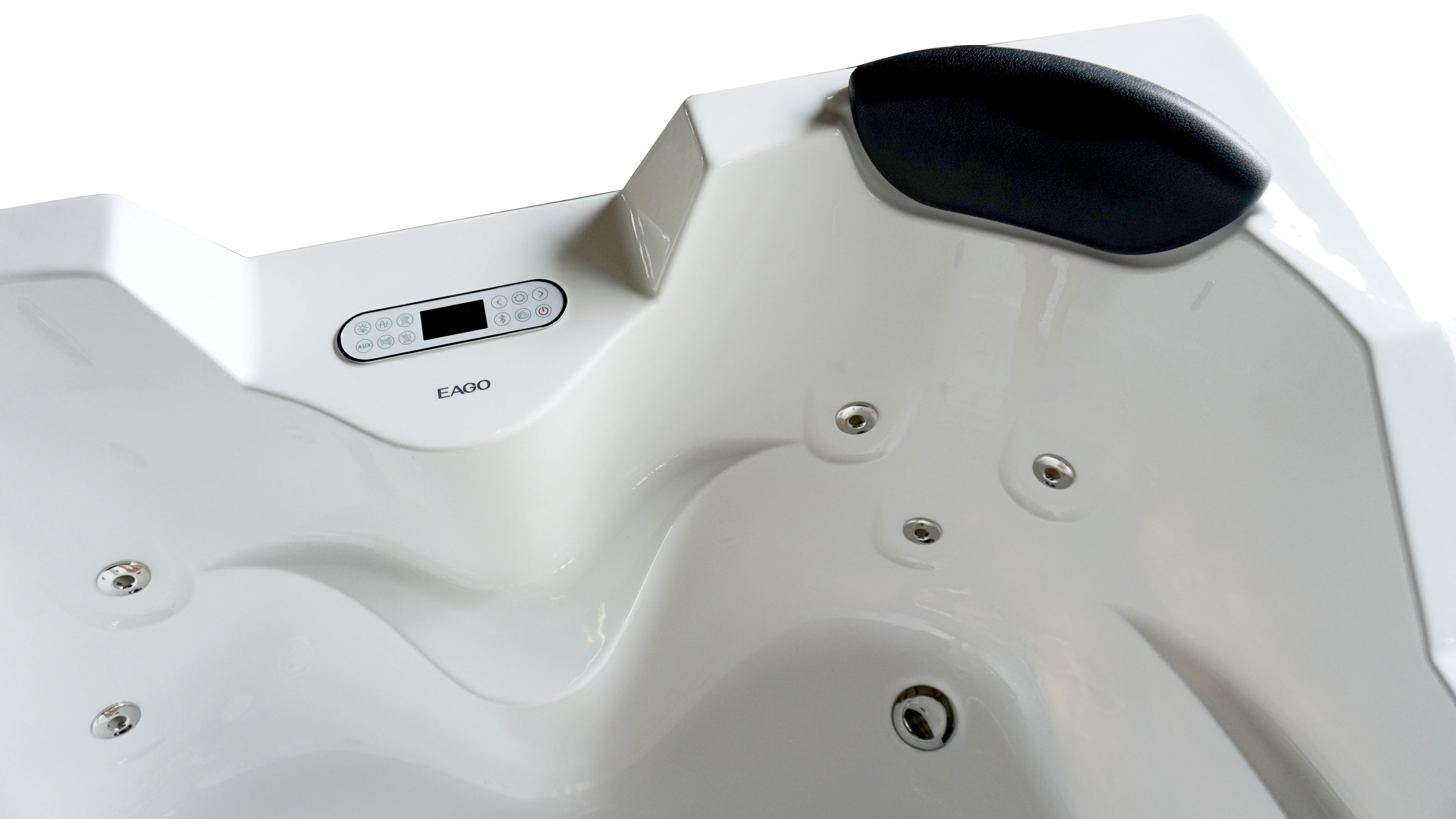 The elegant AM113ETL-R EAGO whirlpool bath tub is truly one of a kind. Filled with cool gadgets and effects like the built in stereo, bluetooth, lighting, and button jets. This ETL Certified tub features a functional and space saving corner design with built in towel bar and shelf, adding the finishing touch to any bathroom.