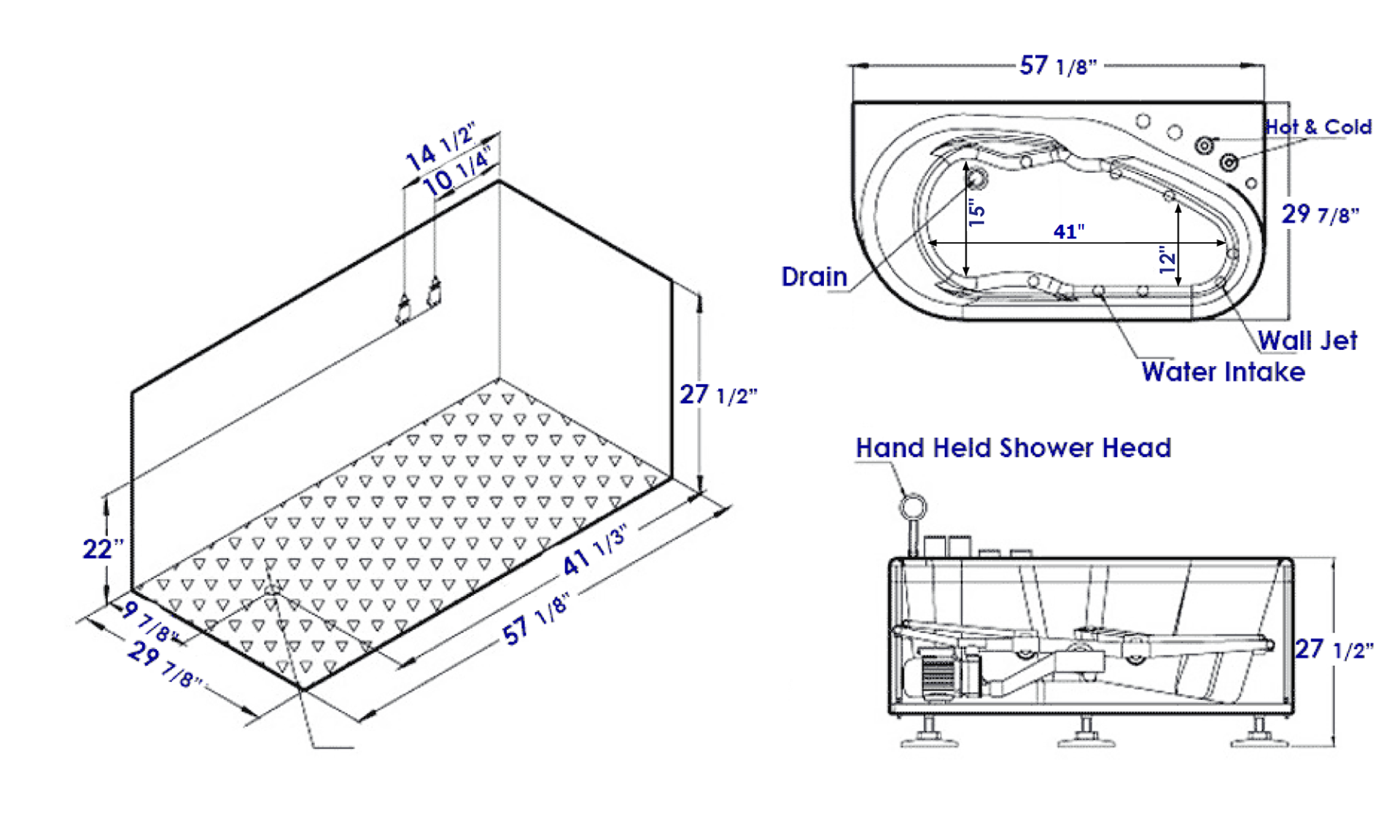 Space-Saving Corner Design: 57" size fits perfectly in smaller bathrooms without compromising comfort.