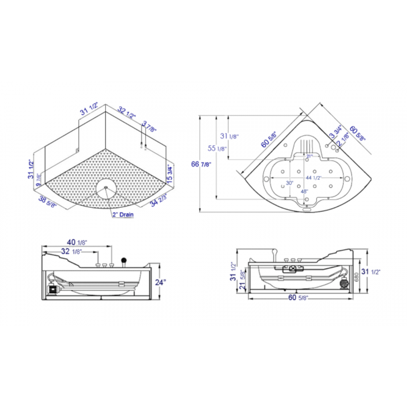 A: Yes, it’s designed for simple corner installation and comes complete with all required fixtures and controls.
